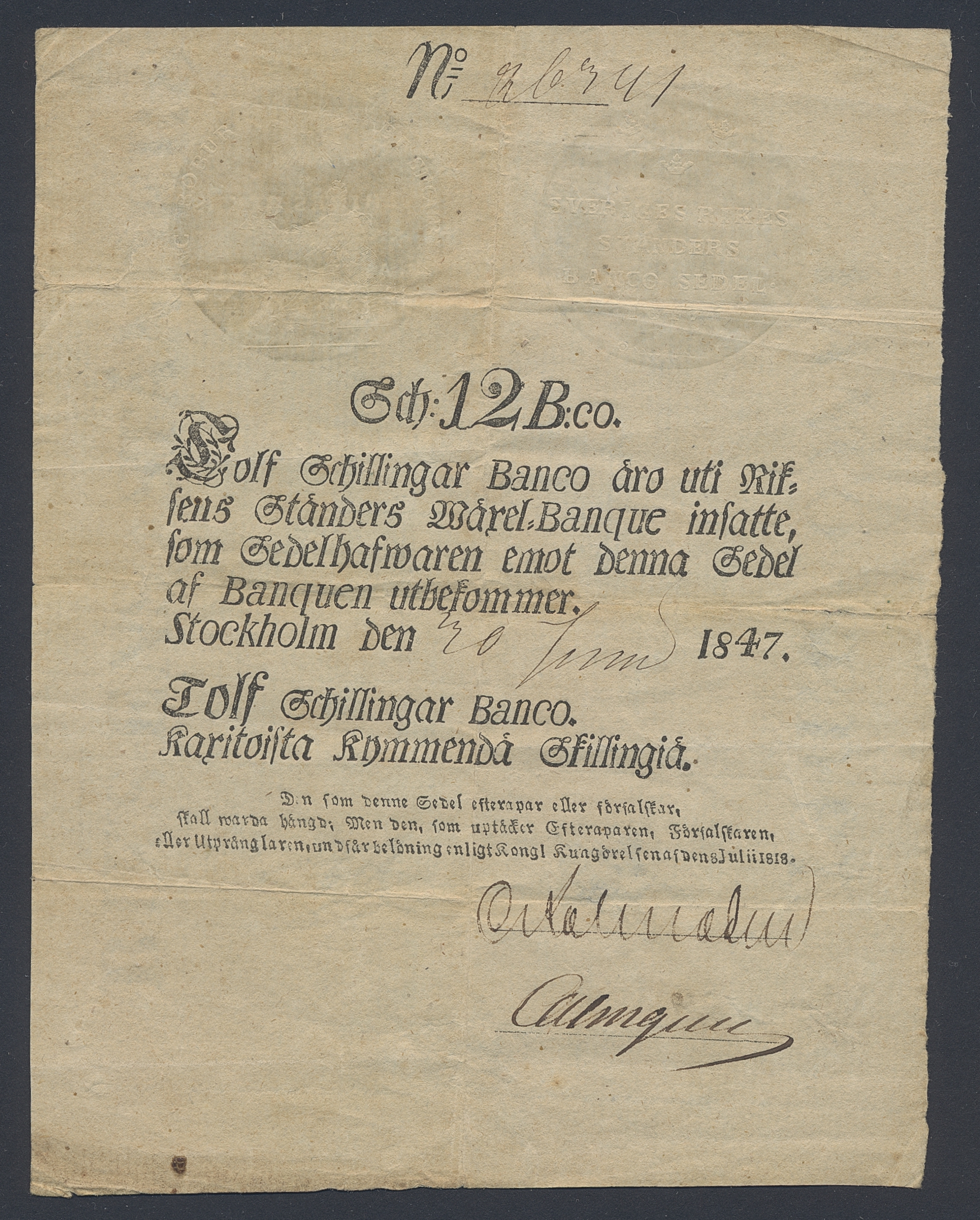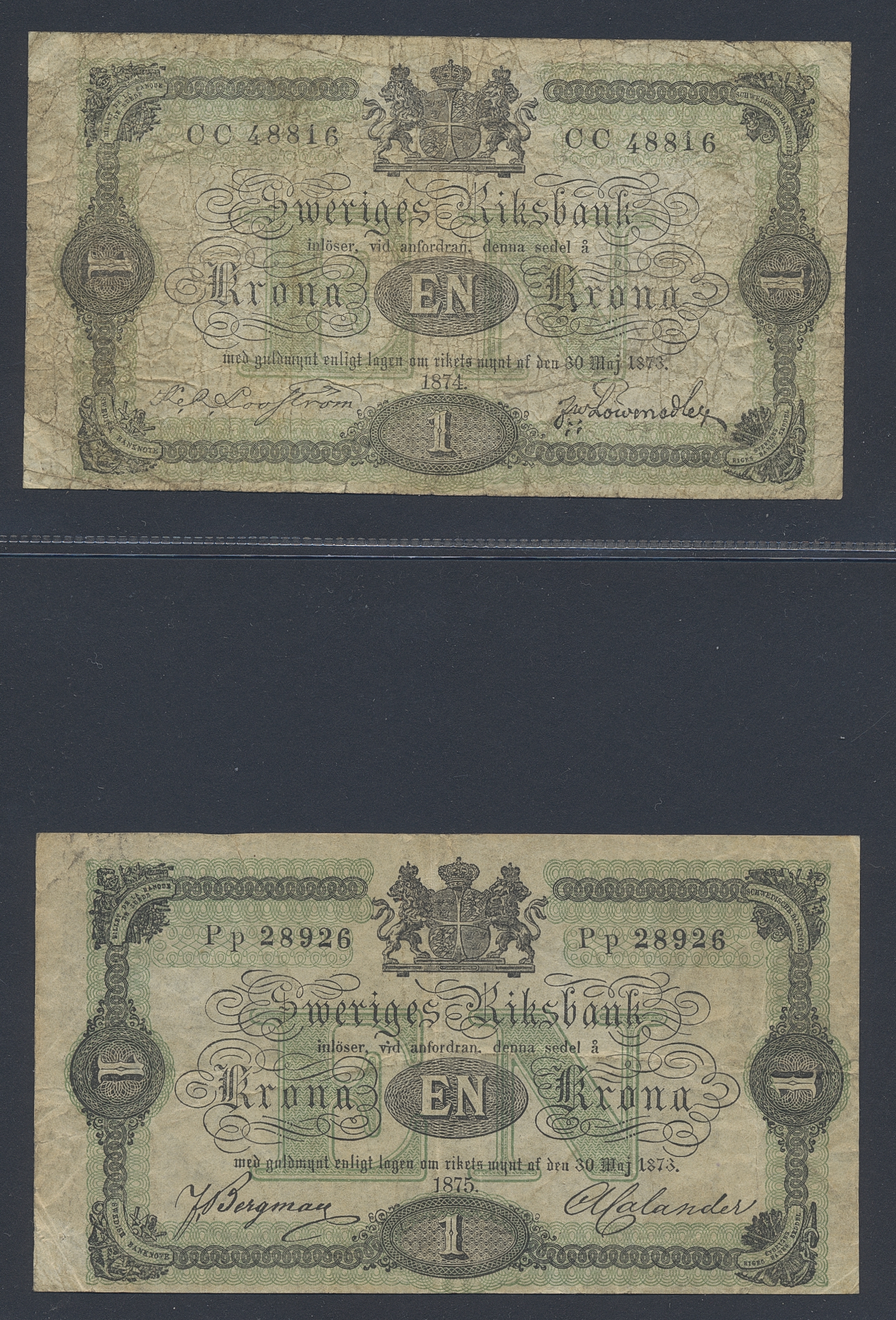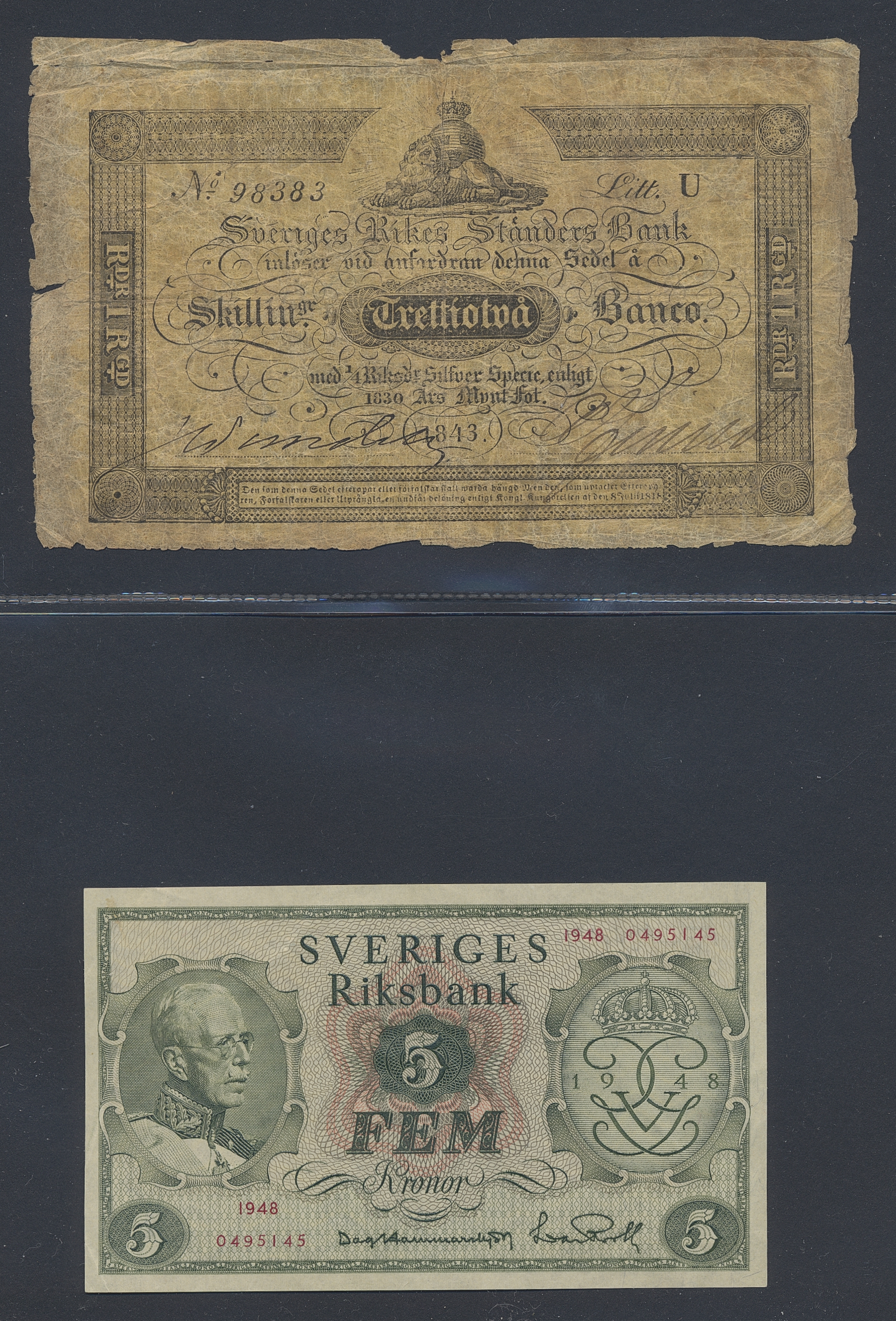 Banknotes, Sweden. Five pcs of banknotes from sweden including 12 sk 1847.