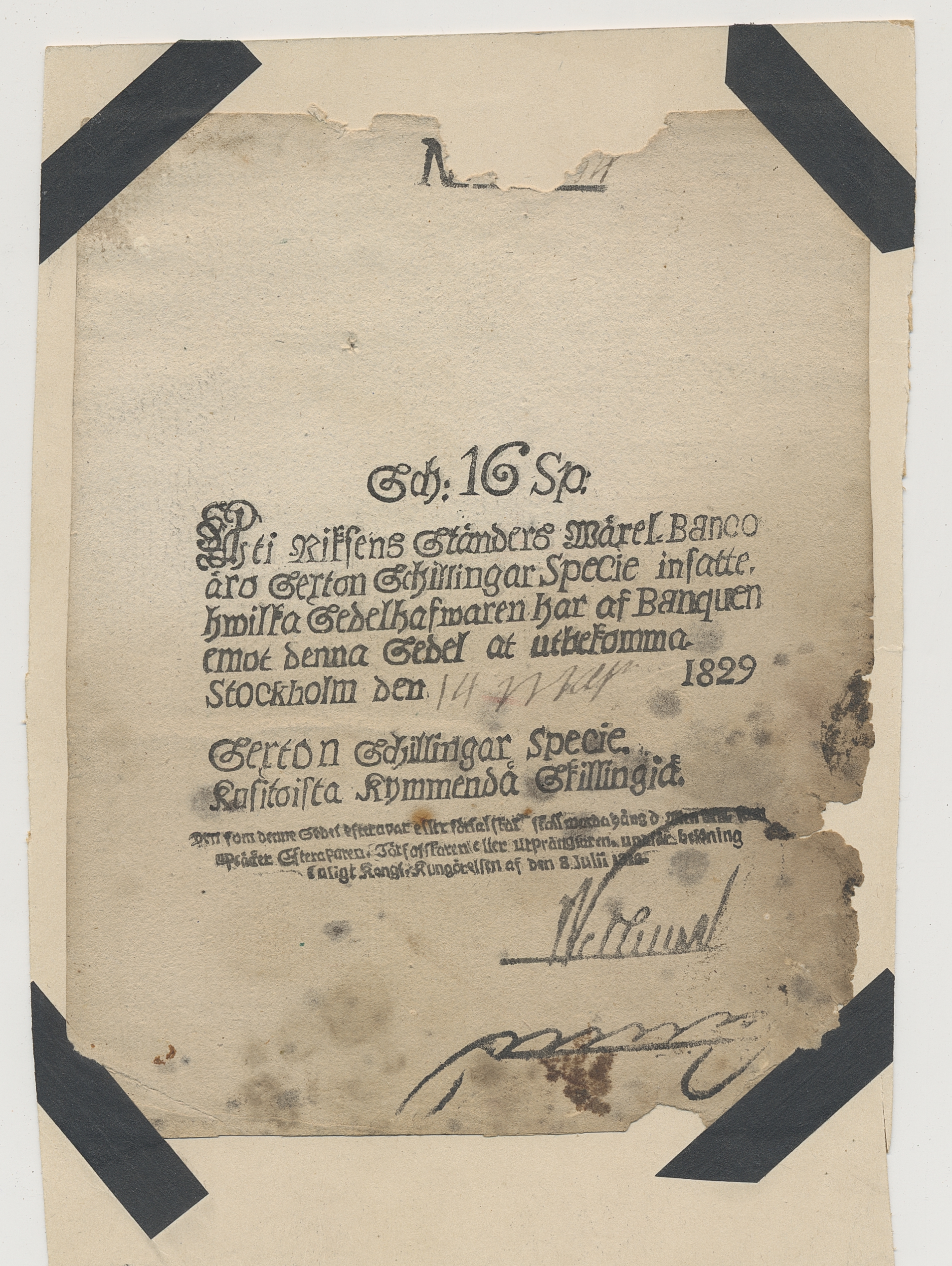 Banknotes, Sweden. Small group of Sweden banknotes black and white type. Also some old documents. Please inspect!