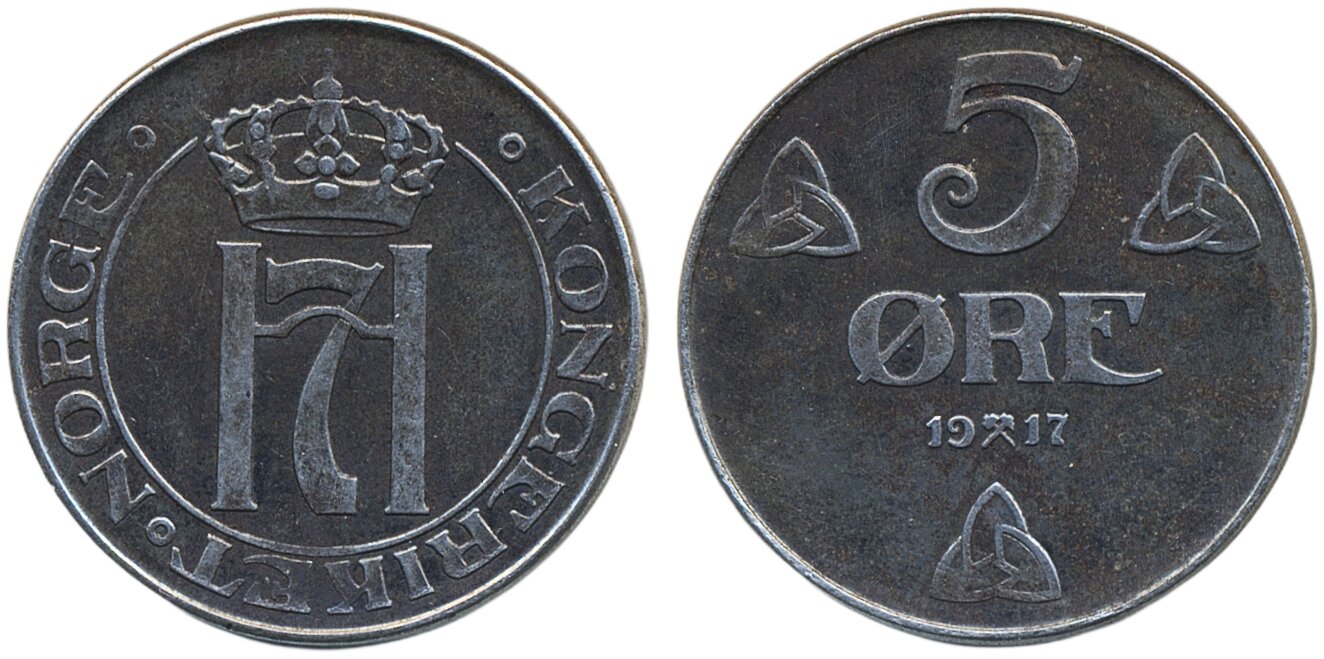 Coins, Norway. Haakon VII, NM 151, 5 øre 1917. 01.
