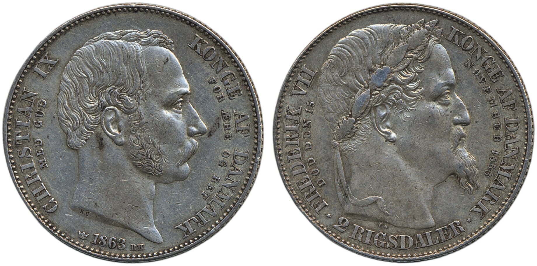 Coins, Denmark. Christian IX, Sieg 4-H3, 2 rigsdaler 1863. 1+.