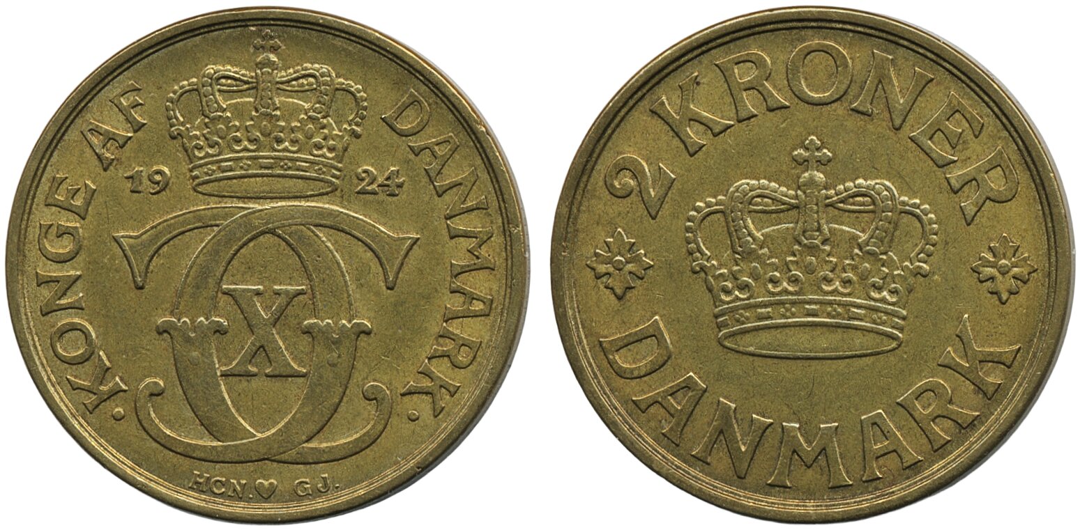 Coins, Denmark. Christian X, Sieg 3.1, 2 kroner 1924. Key date in better grade. 1+/01.
