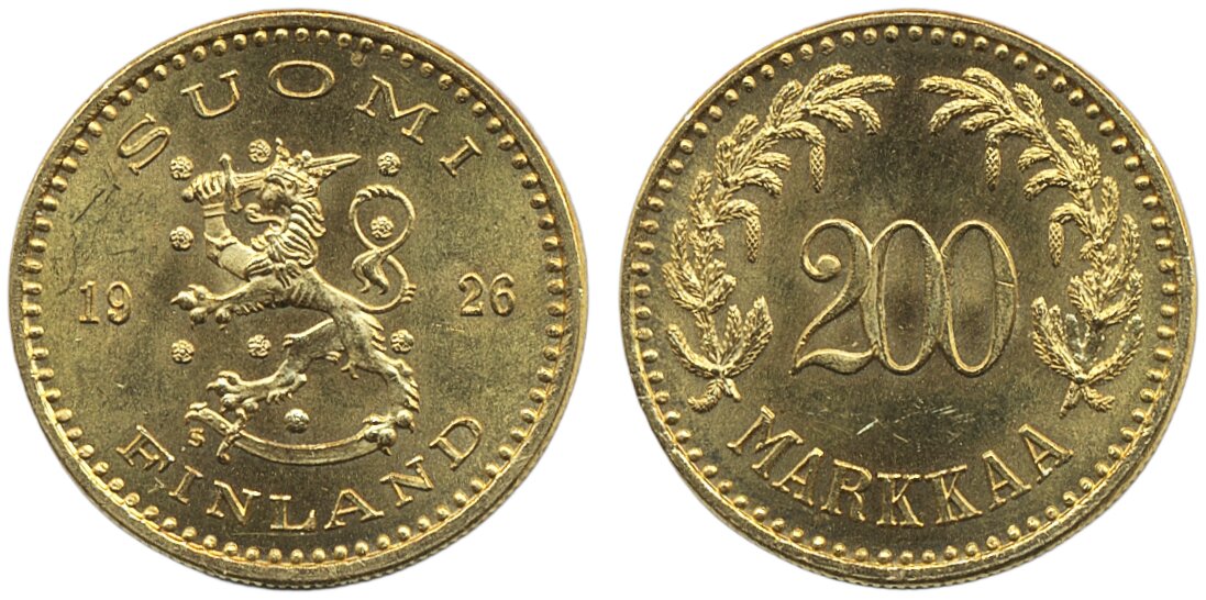 Coins, Finland. Republic, KM 29, 200 markkaa 1926. 01.