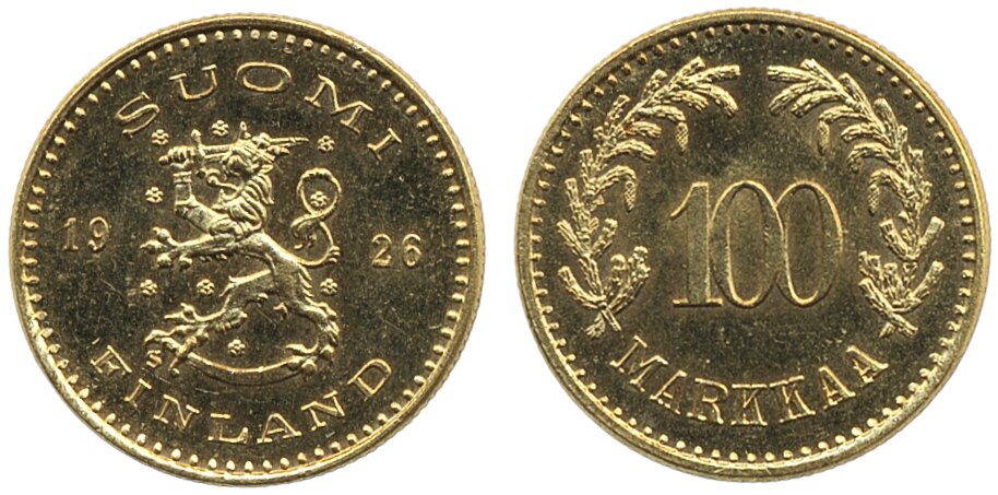 Coins, Finland. Republic, KM 28, 100 markkaa 1926. 1+/01.