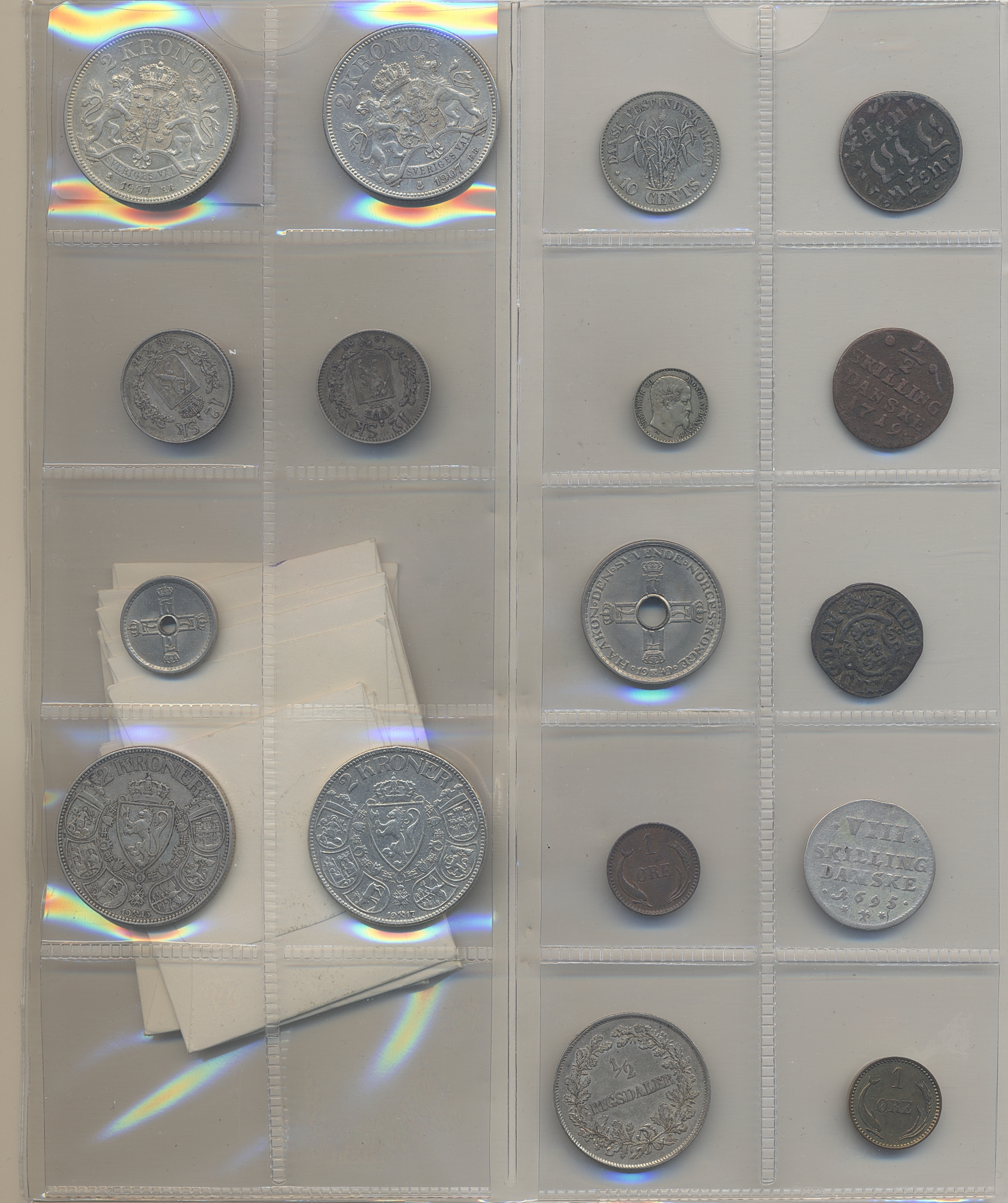 Coins, Nordic countries. Lot of Norway, Denmark and Danish West Indies in silver and base metals 1600s–1900s. In total 17 pcs. Please inspect! 1?-01/0.