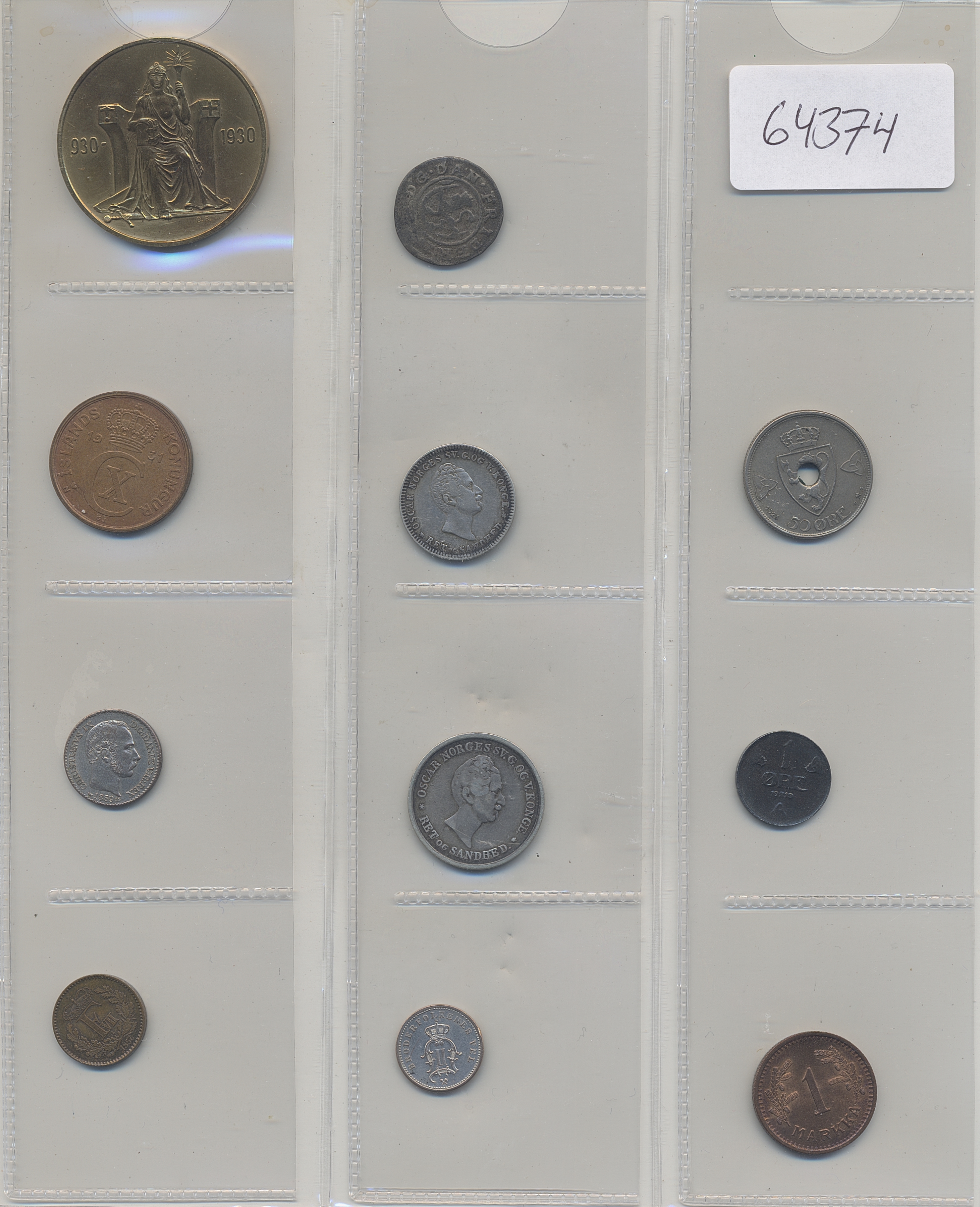 Coins, Nordic countries. Small group of eleven Nordic coins. 1-01/0.