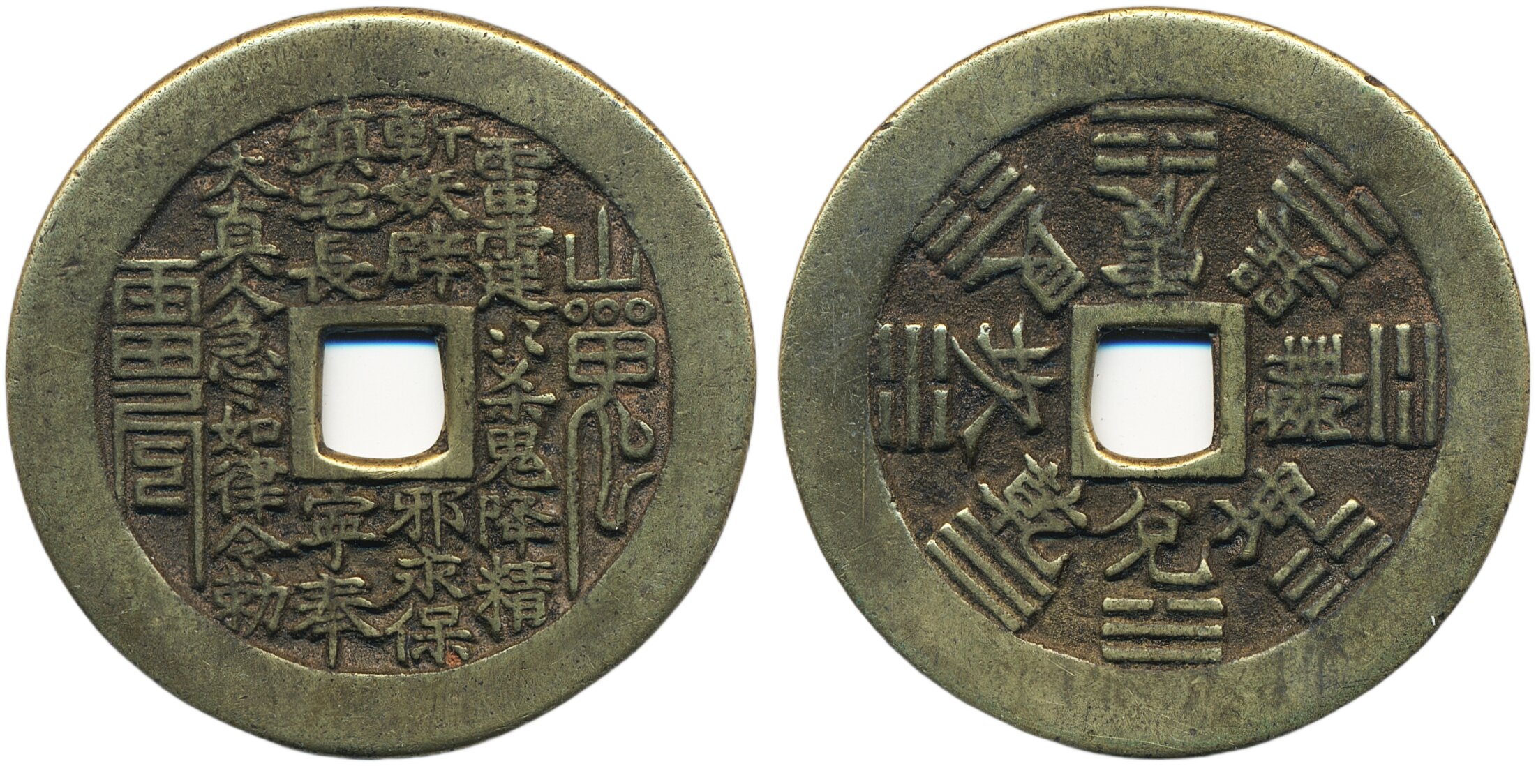 Medals, regal, China, Ancient. CCH -1776, 21.29 g. 45 mm. Daoist curse charm, Qing Dynasty, round centre hole. Very high grade example. XF.