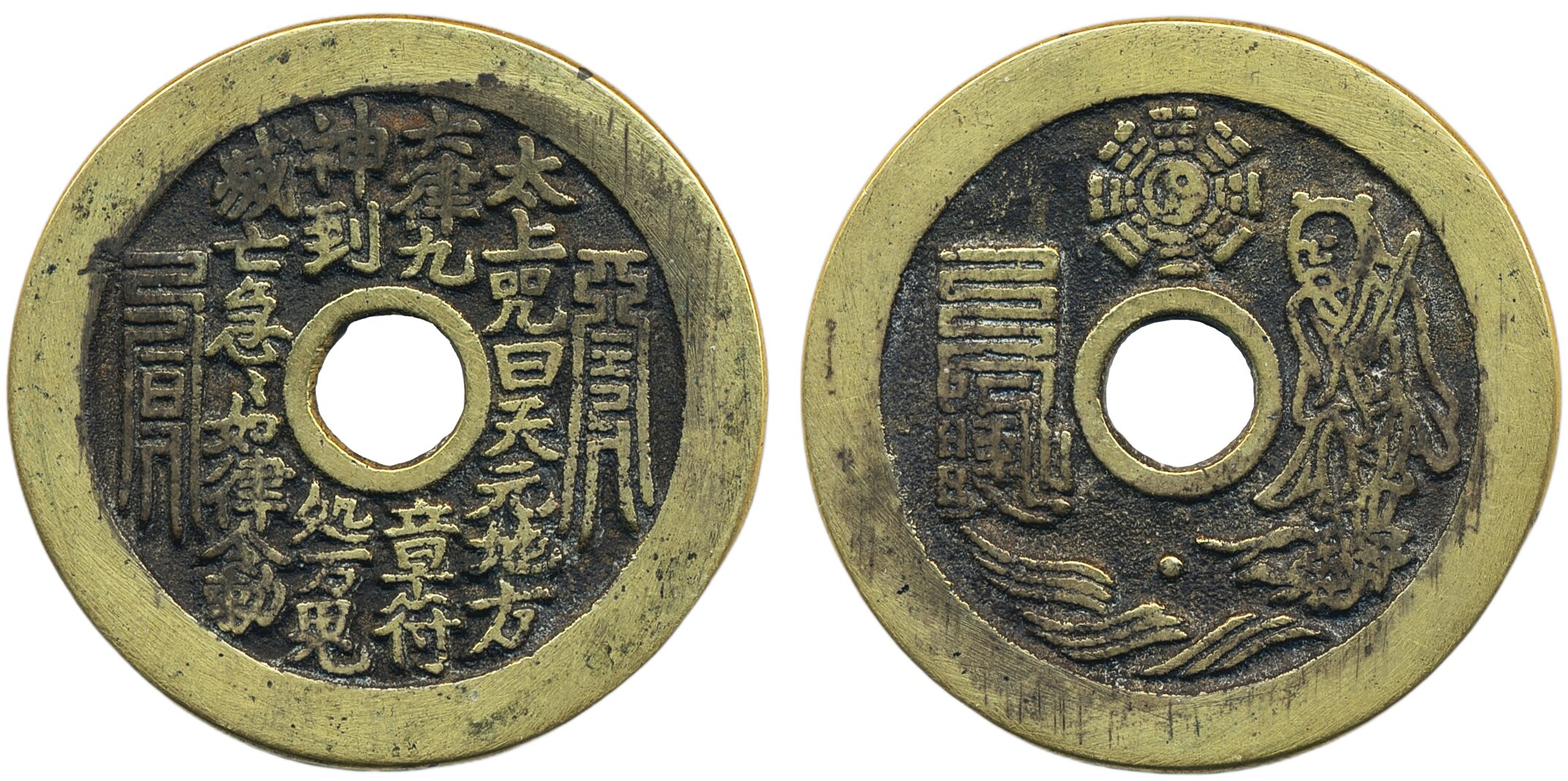 Medals, regal, China, Ancient. CCH -1792, 23.36 g. 44 mm. Daoist curse charm, Qing Dynasty. Round centre hole. Lightly cleaned. VF-XF.