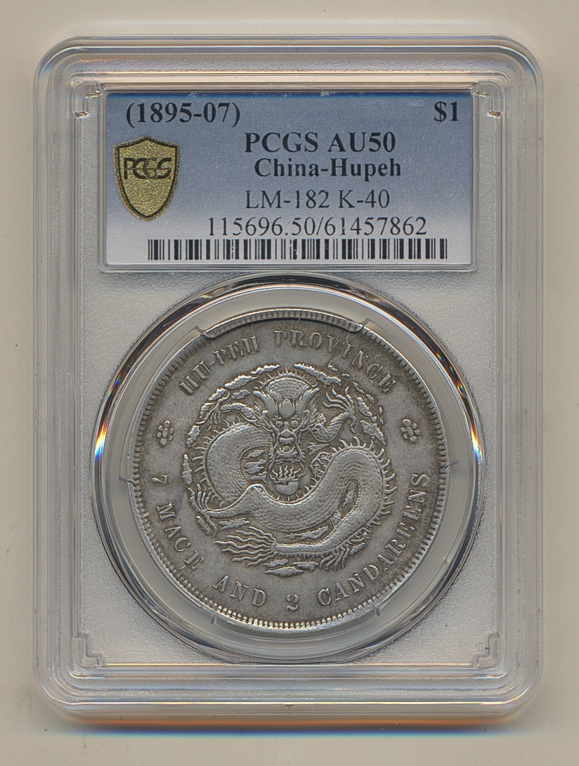 Coins, China, Hupeh Province. L&M- 182, 1 dollar ND (1895-1907). Graded by PCGS as AU50. VF-XF. See certification at PCGS