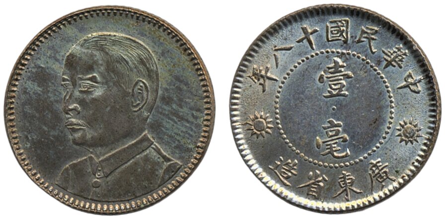 Coins, China, Kwangtung Province. L&M- 160, 10 cents Year 18 (1929). XF-UNC.