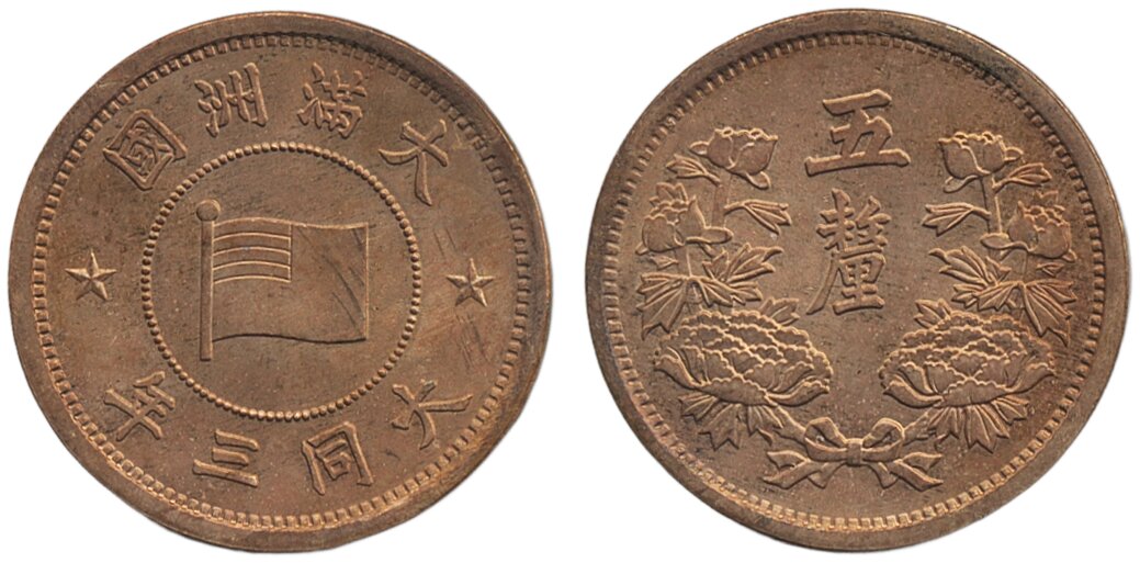 Coins, China, Manchuria. KM Y-6, 1 fen KT3 (1936). CL-MG.154. XF-UNC.