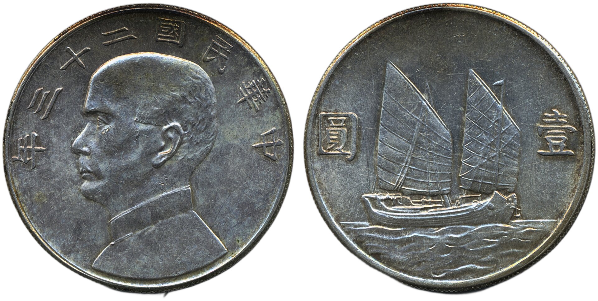Coins, China, Republic of China. L&M- 110, 1 dollar 1934 (Year 23). Lustrous example. XF.