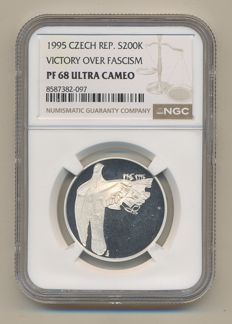 Coins, Czech Republic. KM 15, 200 korun 1995. Graded by NGC as PF68 ULTRA CAMEO. Low mintage. Proof. See certification at NGC
