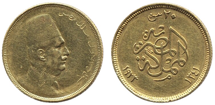 Coins, Egypt. Fuad I (1922-1936), KM 339, 20 piastres 1923. 1.70 g. VF-XF.