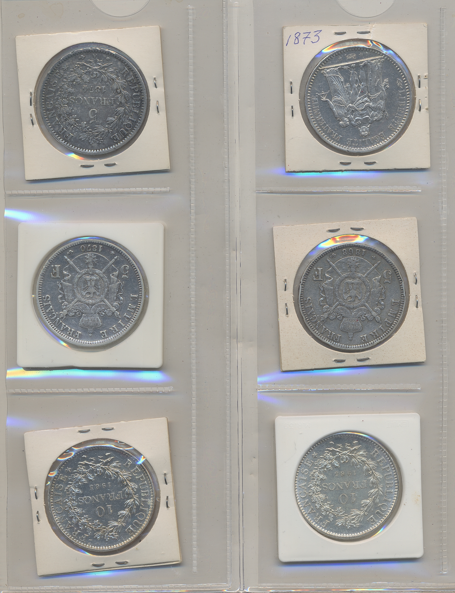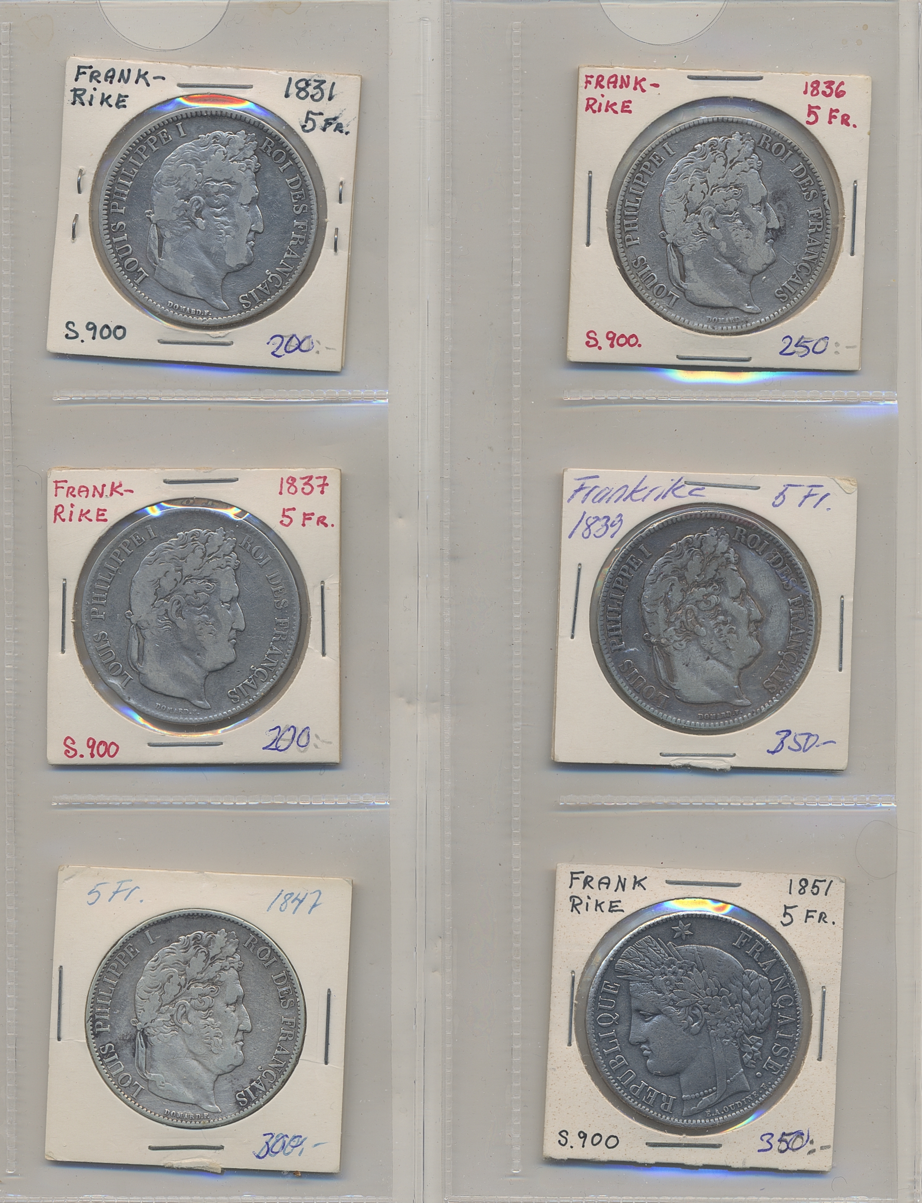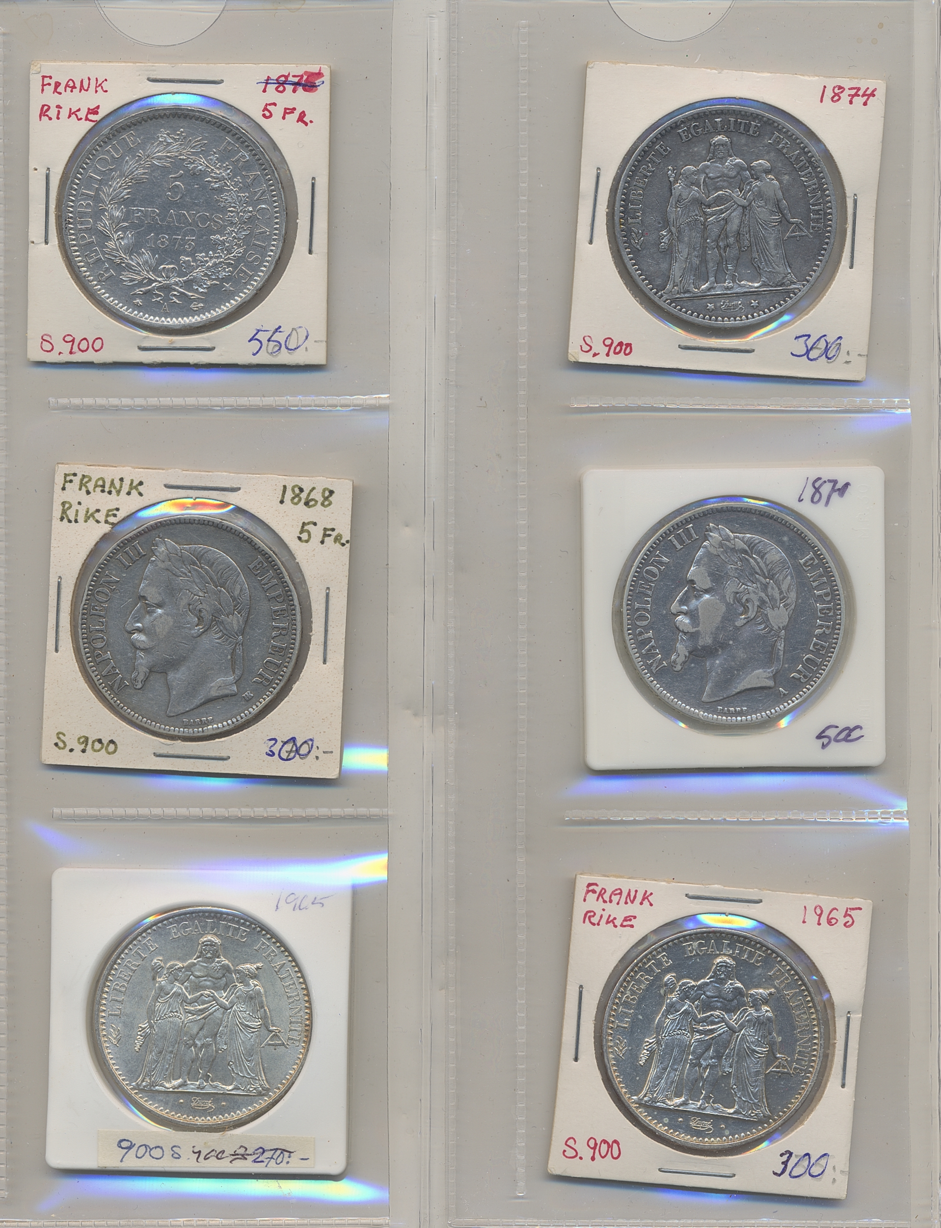 Coins, France. Lot. More than 70 coins in different metals, e.g. 20 larger silver coins. Please see a selection of scans at www.philea.se. Mixed quality.