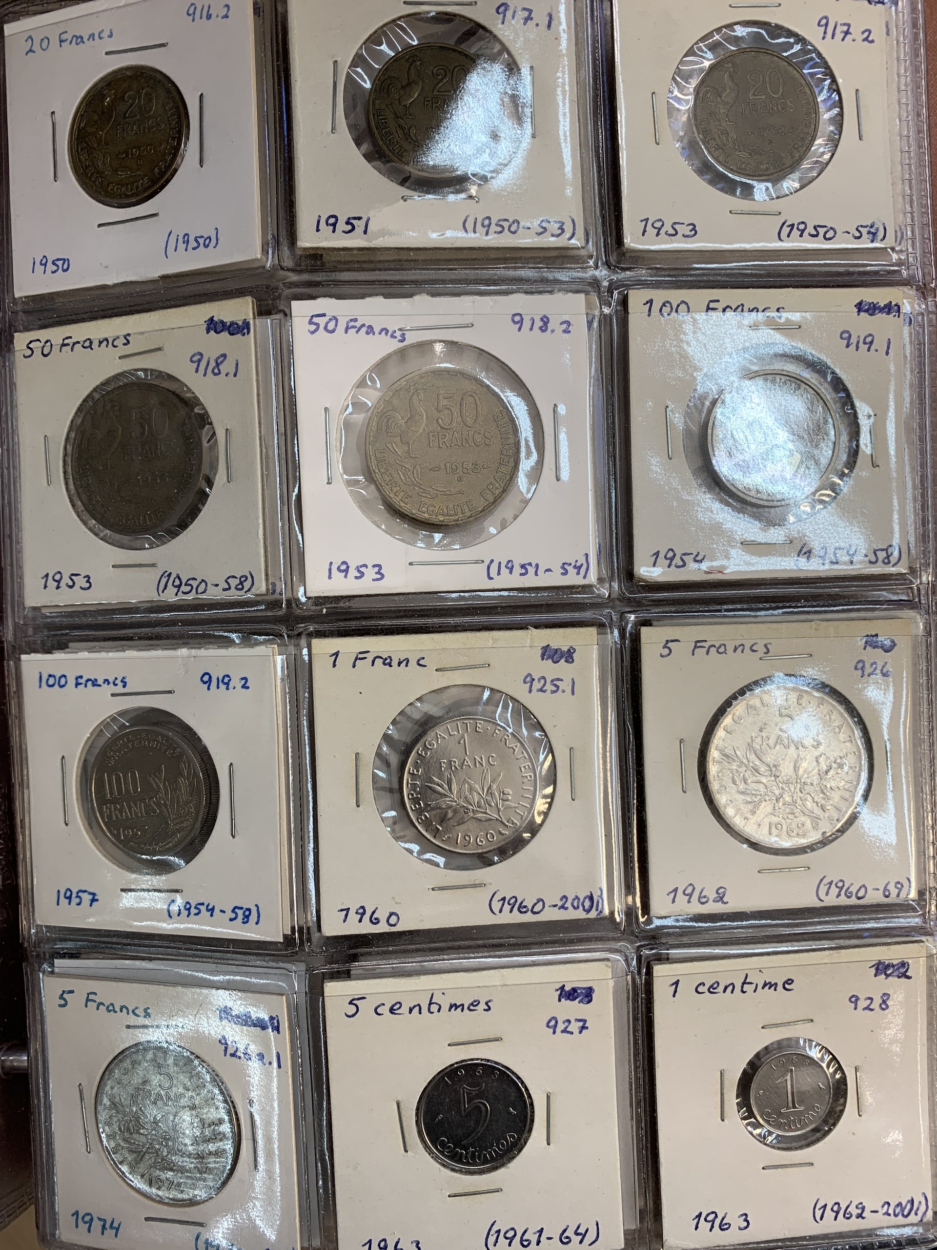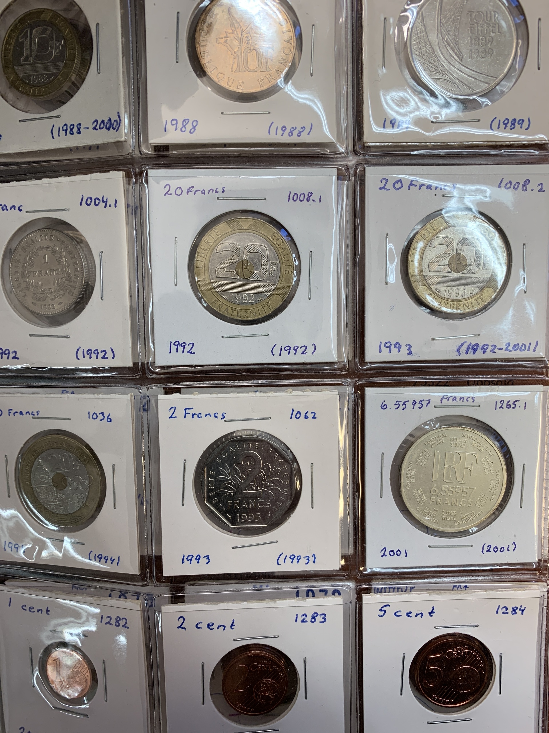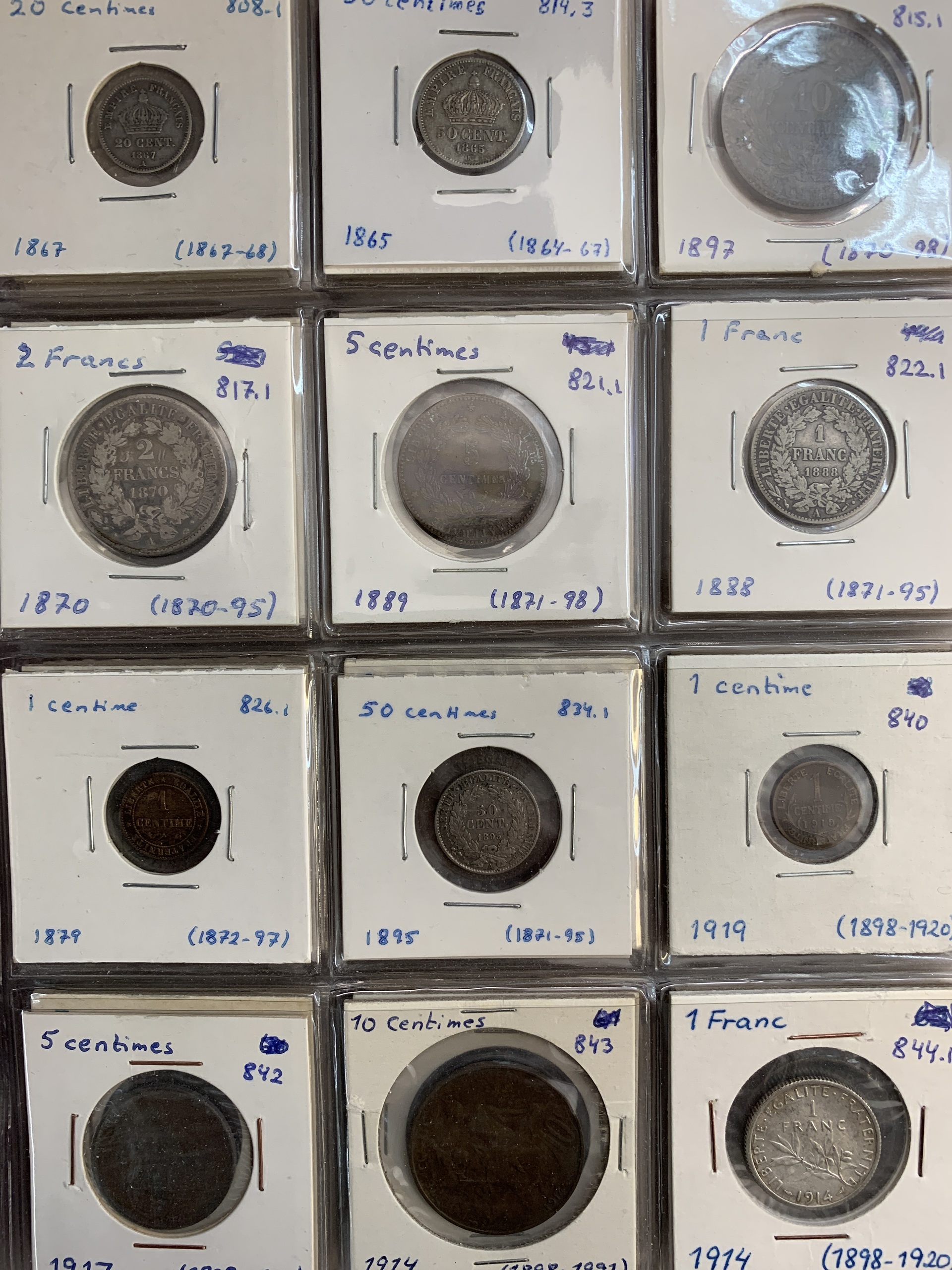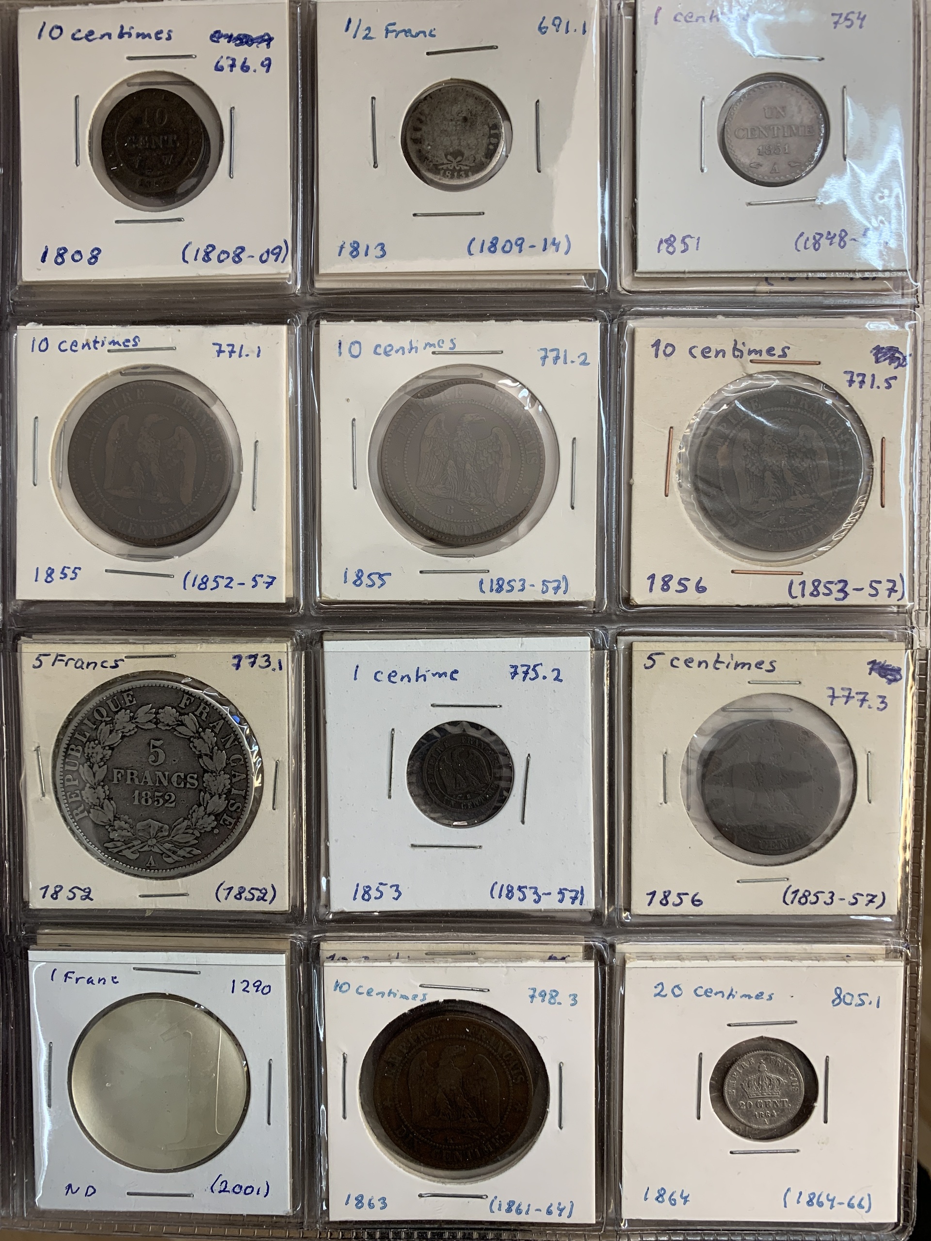 Coins, France. Album with approx. 110 coins in different values and metals, ca. 1808–2001. Please see a selection of scans at www.philea.se.