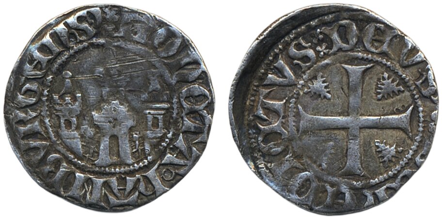 Coins, Germany, Hamburg. Gaed. 1091, 1 witten ND. 1.29 g. Struck before 1379. City gate with three towers / Cross pattée; nettle leaves in quarters. Jesse 303. VF.