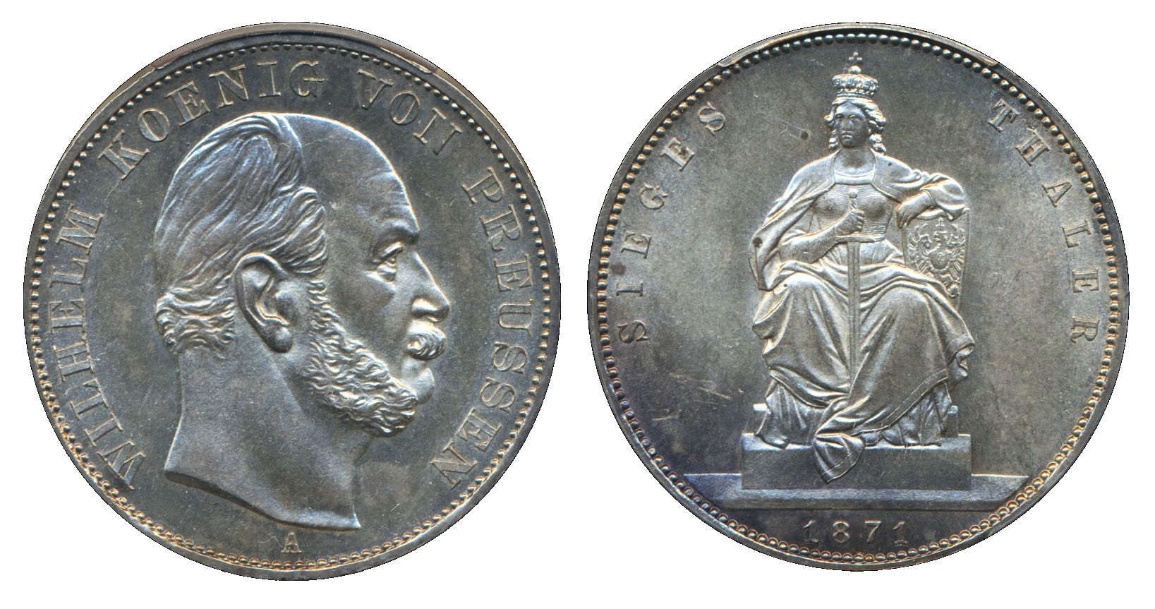 Coins, Germany, Prussia. Wilhelm I (1861-1888), KM 500, 1 thaler 1871 A. Graded by PCGS as MS63. XF-UNC. See certification at PCGS