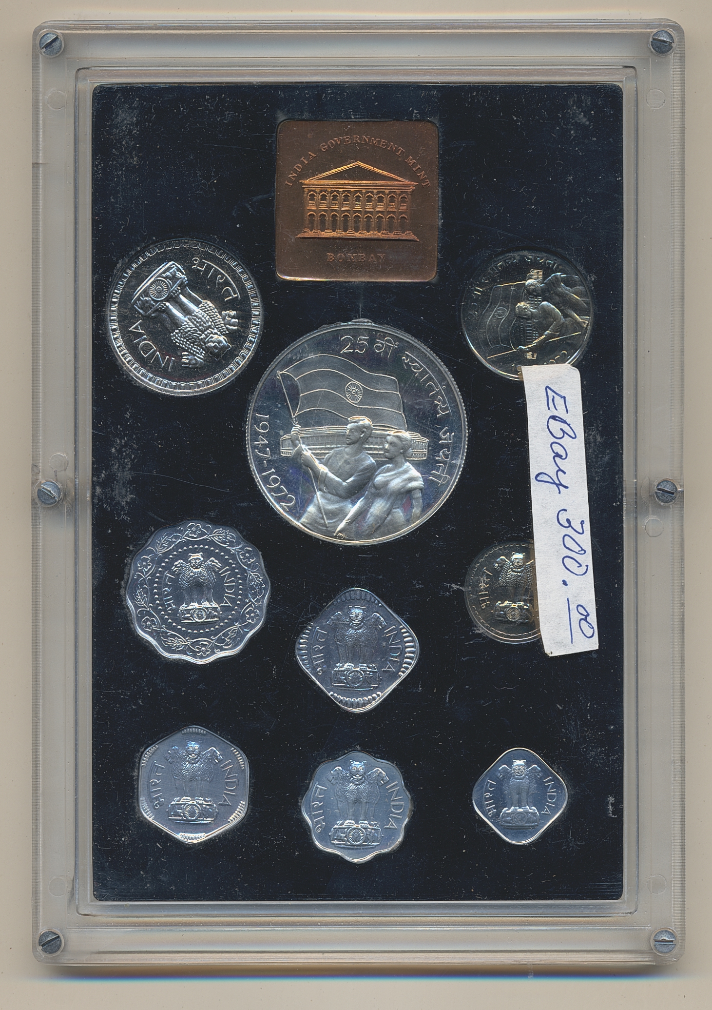 Coins, India. KM PS10, Mint proof set 1972 in original packaging. Scarce. UNC.