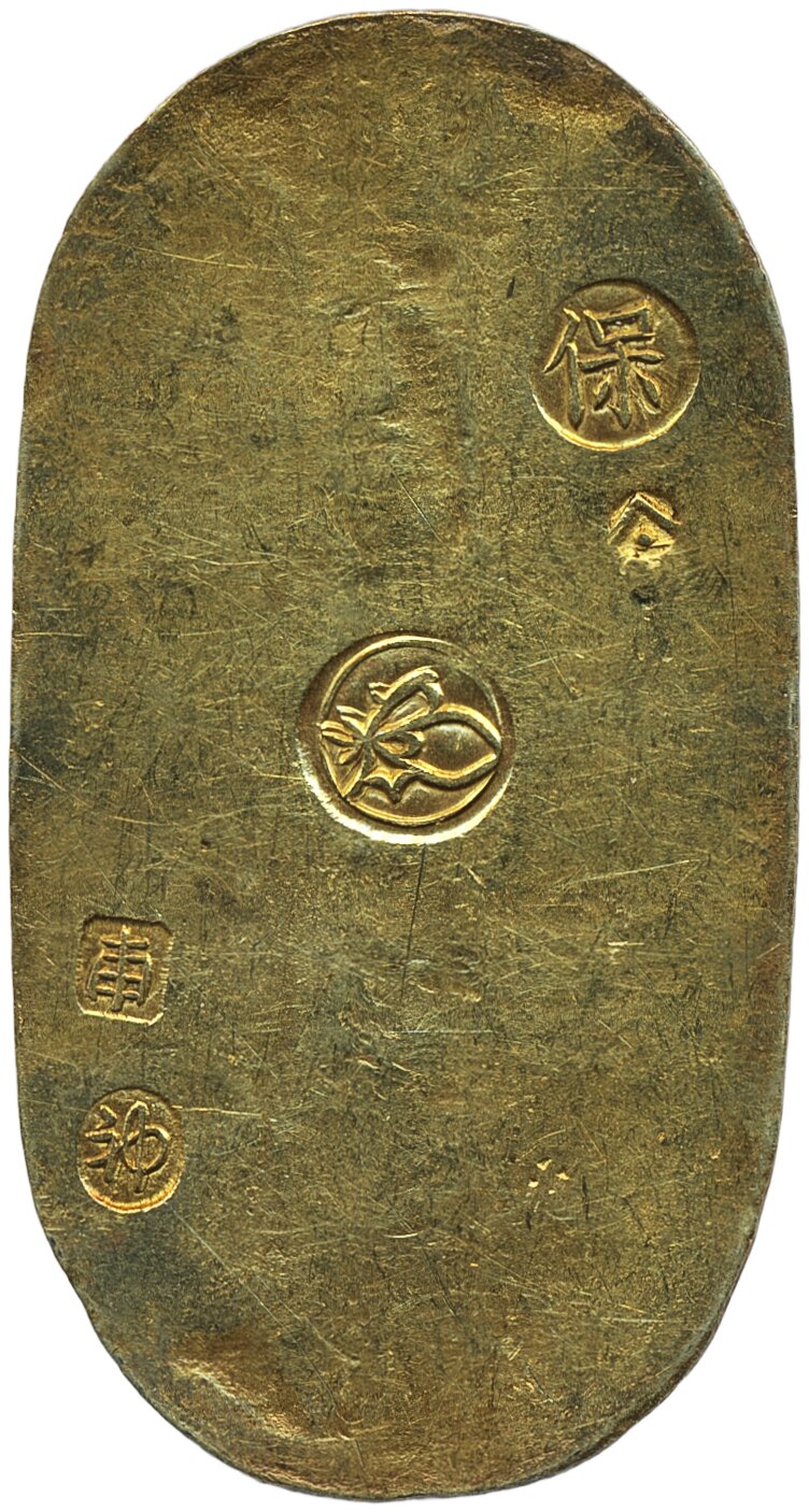 Coins, Japan. JNDA 09-23, 1 koban ND. 11.26 g. Tenpo era. With JNDA certificate. A single bankera mark on reverse. XF.