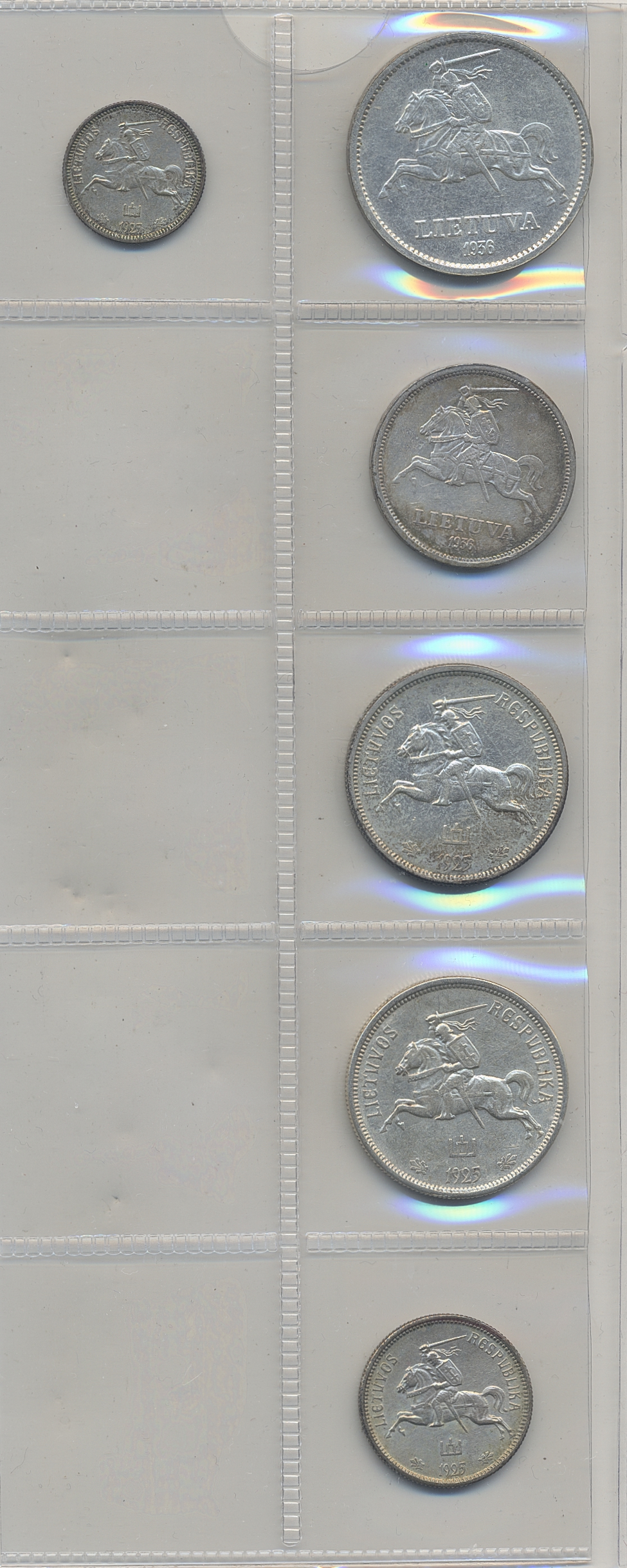 Coins, Lithuania. Collection of silver coins from Lituainia. In total six pcs. Please inspect!
