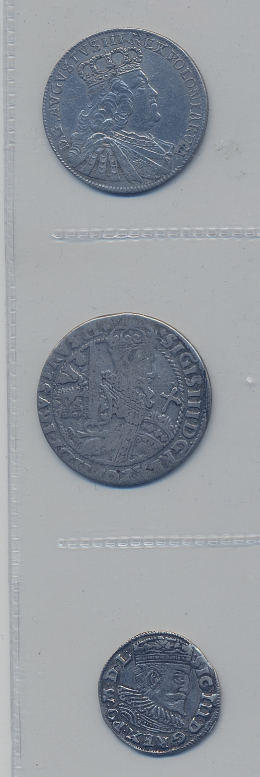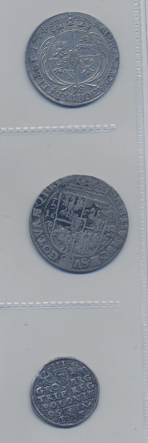 Coins, Poland. Small lot of three Polish coins in silver including trojak 1595, ort 1622 and ort 1754. Please inspect! F-VF.