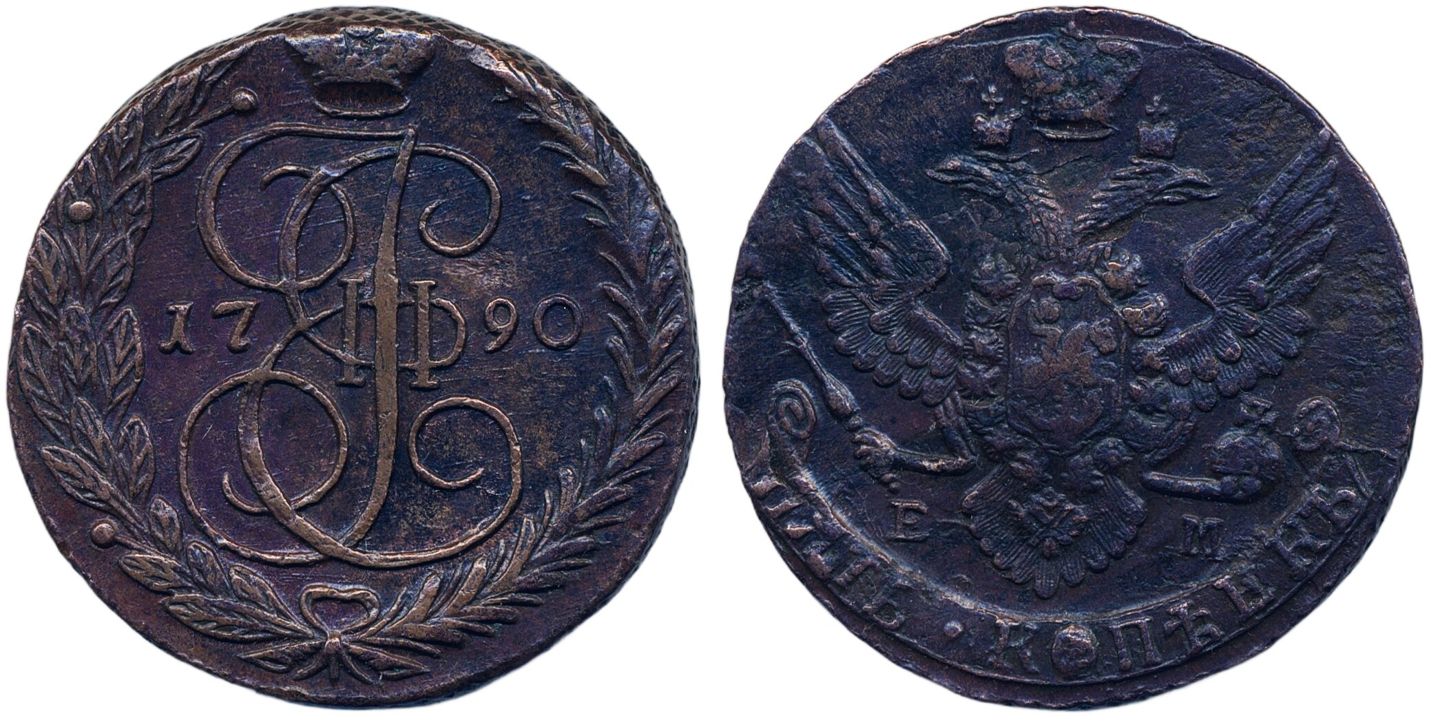 Coins, Russia. Catherine II, Bitkin 644, 5 kopeks 1790 EM. 60.77 g. Ekaterinburg mint. XF.