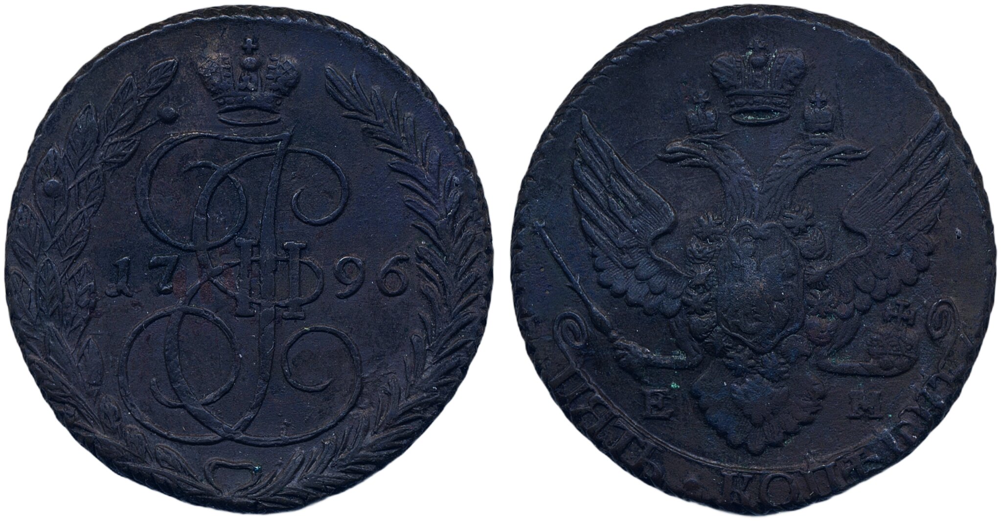Coins, Russia. Catherine II, Bitkin 650 (R), 5 kopeks 1796 EM. 52.98 g. Ekaterinburg mint. VF-XF.