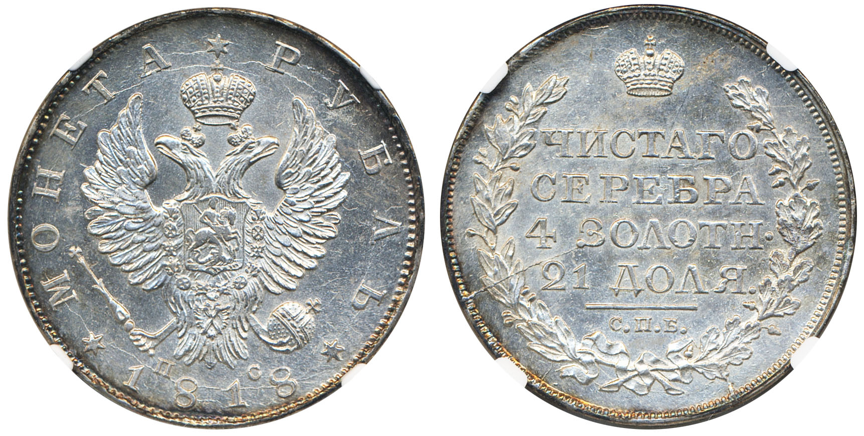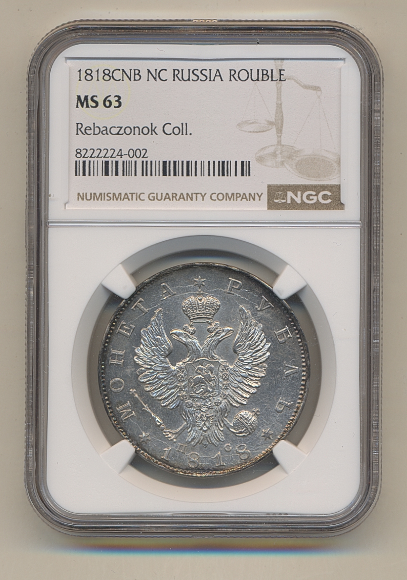 Coins, Russia. Alexander I, Bitkin 124, 1 rouble 1818. Lustrous and beautiful example. Graded by NGC as MS63. XF-UNC. See certification at NGC