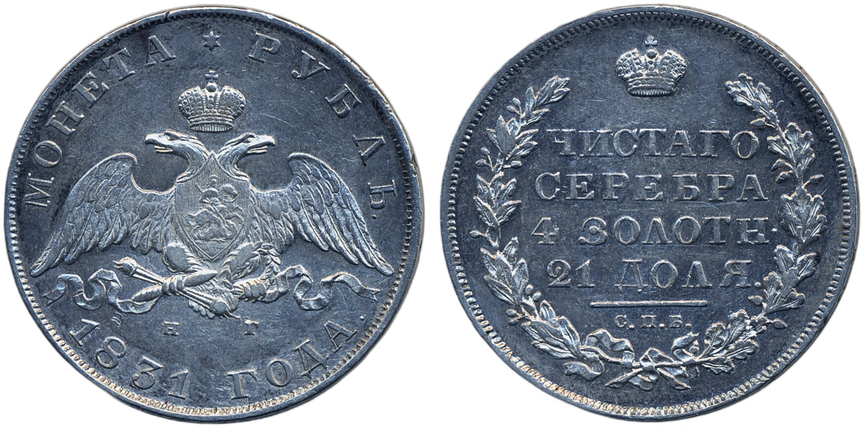 Coins, Russia. Nicholas I, Bitkin 111 (R), 1 rouble 1831. Lightly cleaned, lustrous. Variety with open 2. VF-XF.