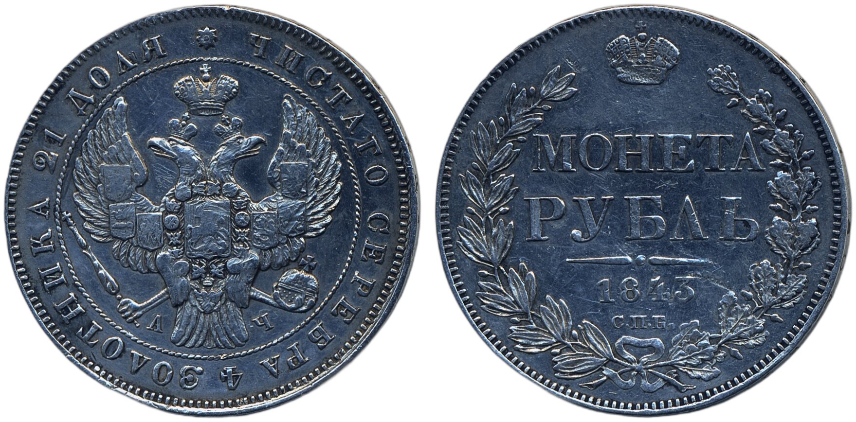 Coins, Russia. Nicholas I, Bitkin 202, 1 rouble 1843. Cleaned. Planchet flaws. VF.