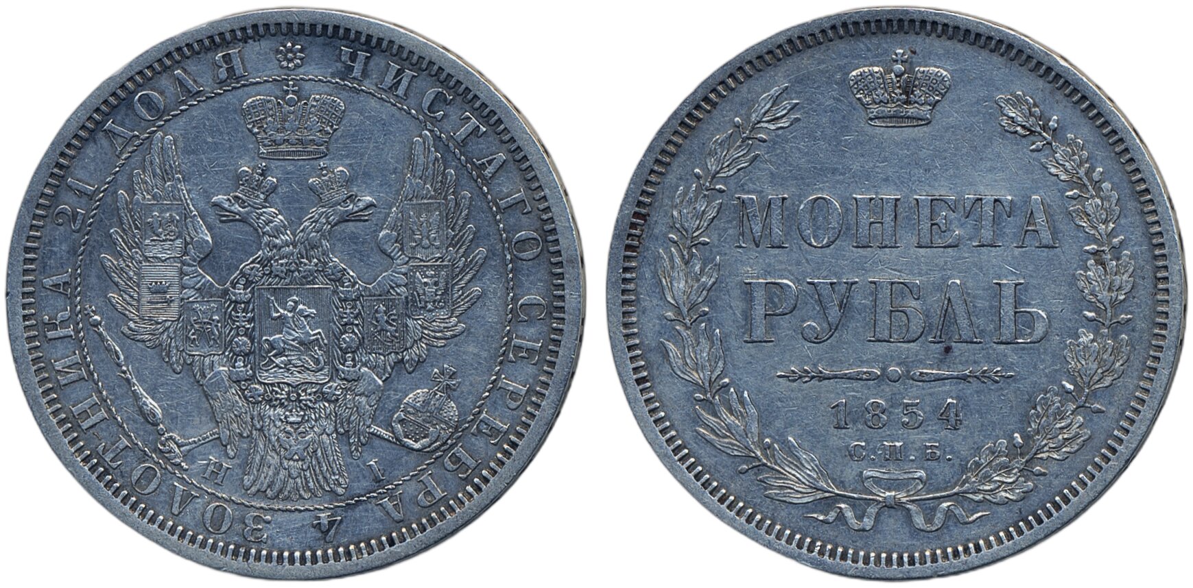 Coins, Russia. Nicholas I, Bitkin 234, 1 rouble 1854. Wreath of 7 links. Cleaned. VF.