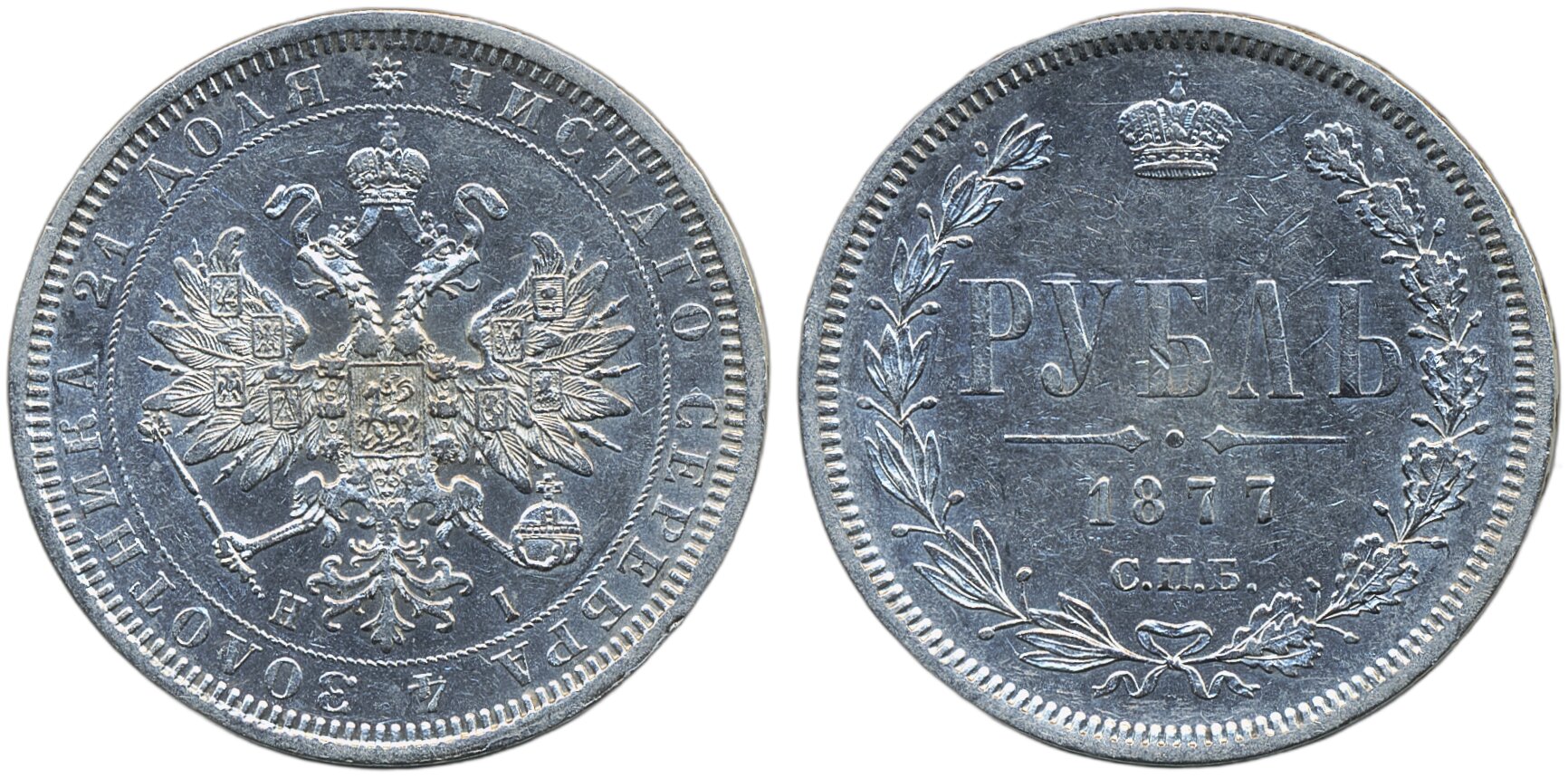 Coins, Russia. Alexander II, Bitkin 90, 1 rouble 1877. Cleaned. VF-XF.