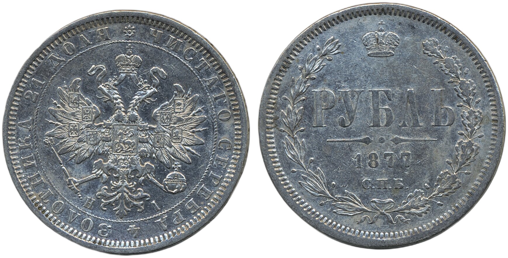 Coins, Russia. Alexander II, Bitkin 90, 1 rouble 1877. Lightly cleaned. VF-XF.