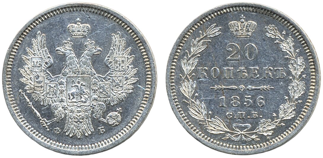 Coins, Russia. Alexander II, Bitkin 59, 20 kopeks 1856. XF.