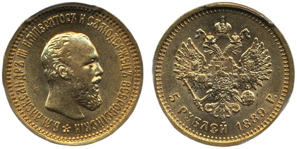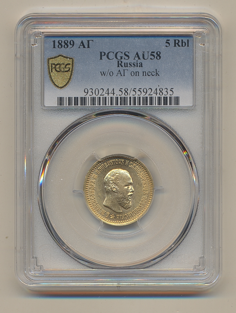 Coins, Russia. Alexander III, Bitkin 33, 5 roubles 1889. Graded by PCGS as AU58. XF. See certification at PCGS