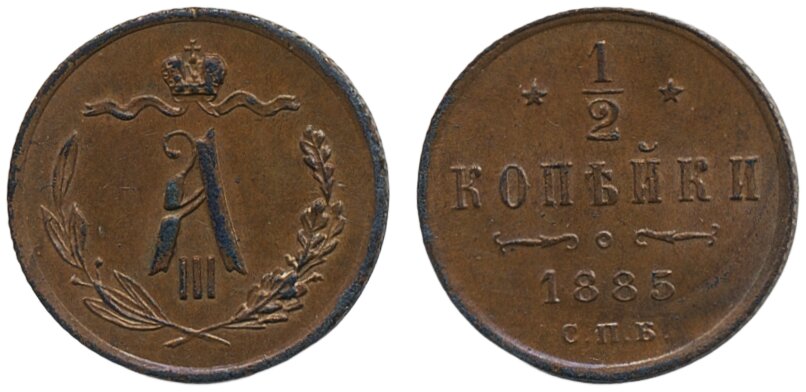 Coins, Russia. Alexander III, Bitkin 195, ½ kopek 1885. XF-UNC.