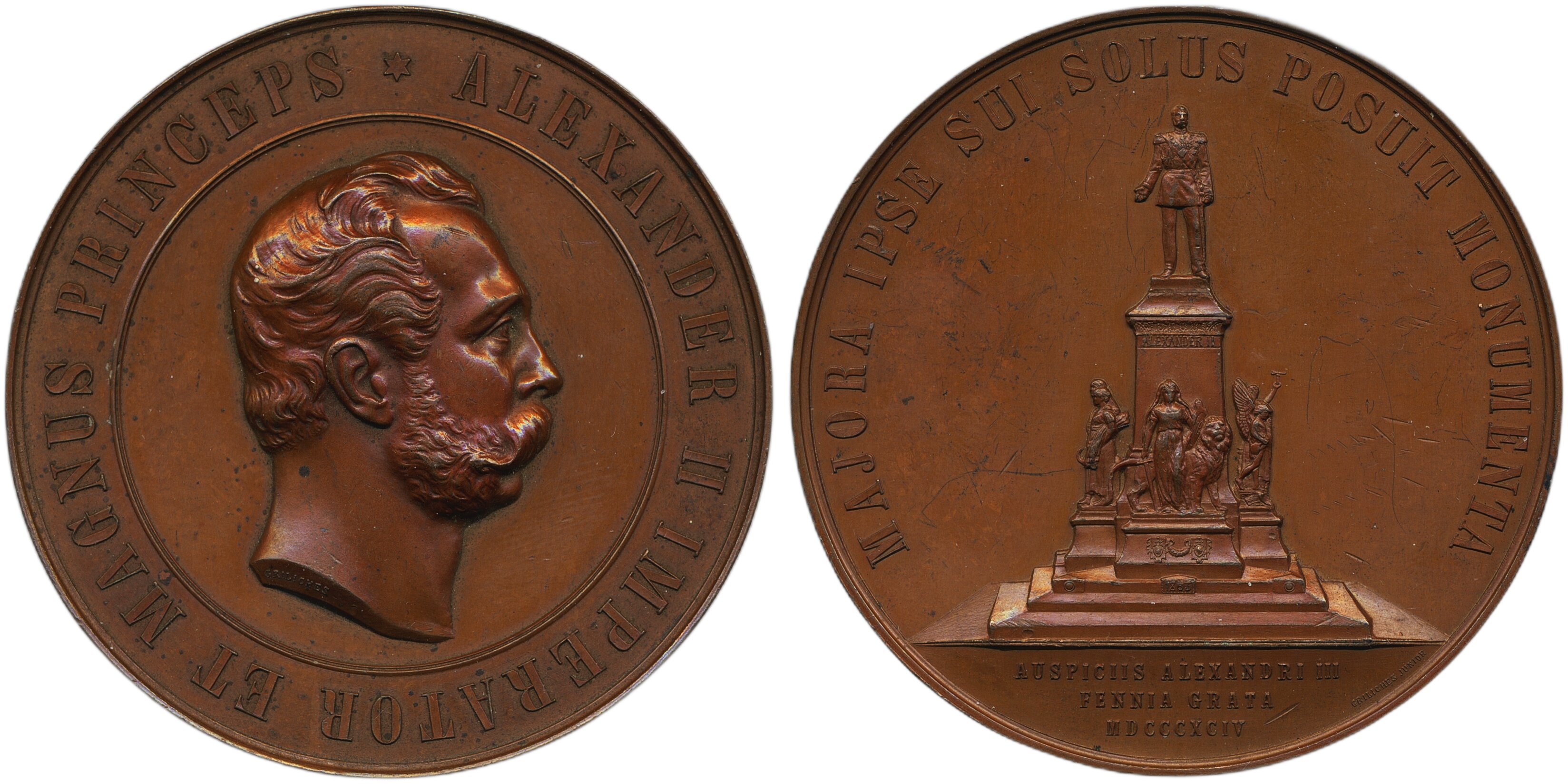 Medals, regal, Russia. Alexander III, Diakov 1096.1, Bronze medal Alexander II Monument in Helsingfors 1894, 146.84 g, 68 mm. By A.A. Grilikhes. VF.