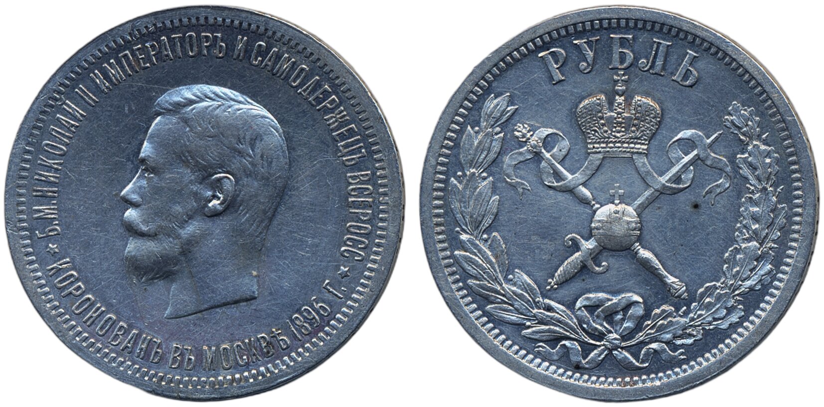 Coins, Russia. Nicholas II, Bitkin 322, 1 rouble 1896. Commemorative issue to coronation. Cleaned. VF-XF.