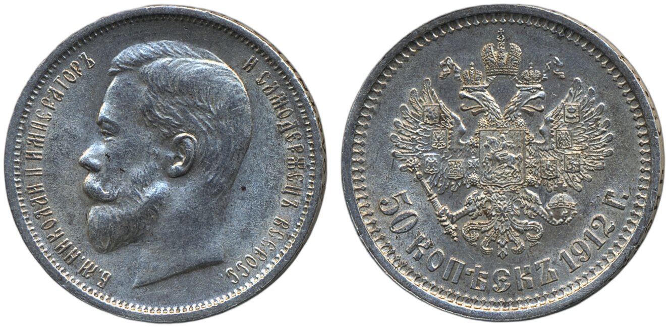 Coins, Russia. Nicholas II, Bitkin 91, 50 kopeks 1912. XF.