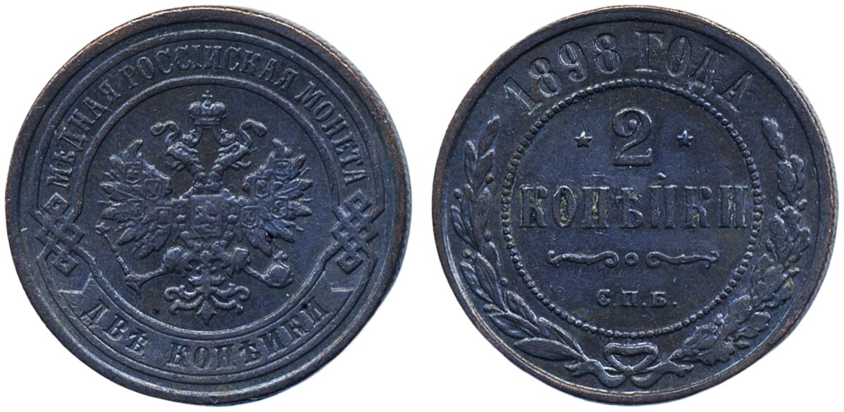 Coins, Russia. Nicholas II, Bitkin 288, 2 kopeks 1898. XF.