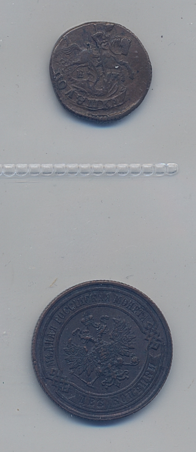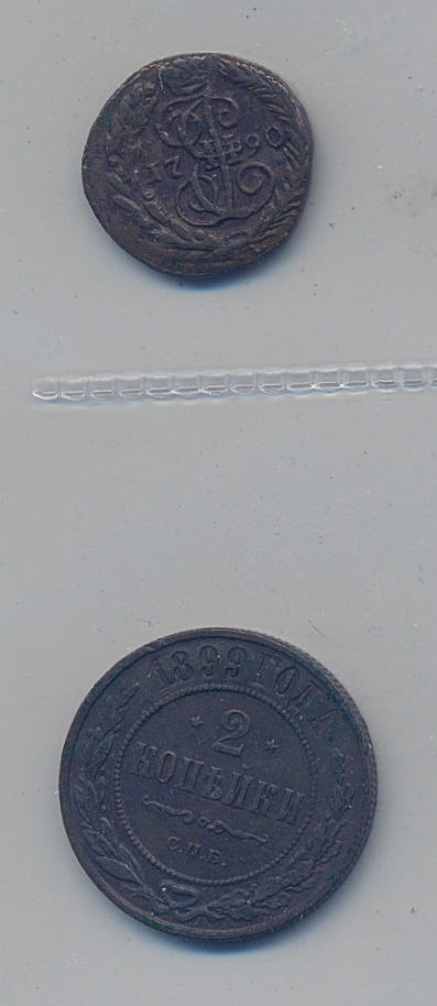 Coins, Russia. Small lot of two Russian better copper coins including polushka 1790 and 2 kopeks 1899 (XF). VF-XF.