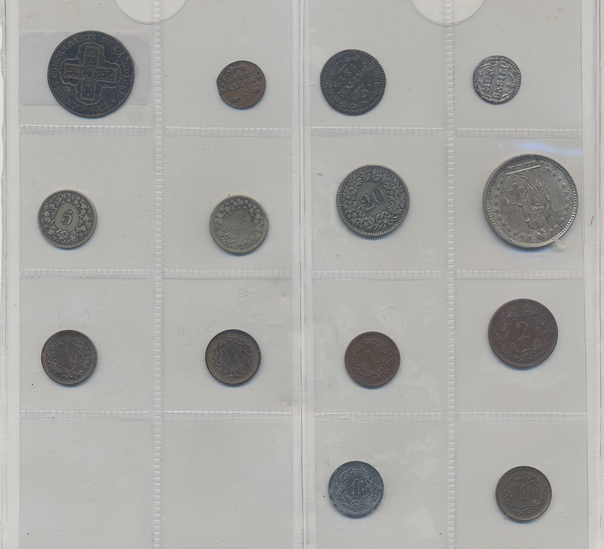 Coins, Switzerland. Small group of 14 coins in silver and copper including several in high grades. Please inspect! F-UNC.