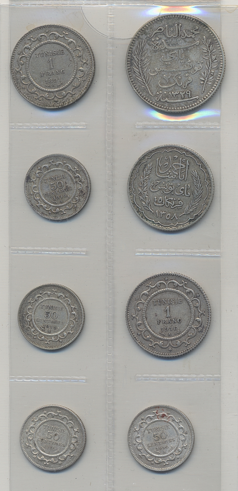 Coins, Tunisien (FR). Small lot of eight silver coins 1891–1939 including some in high grade. VF-UNC.