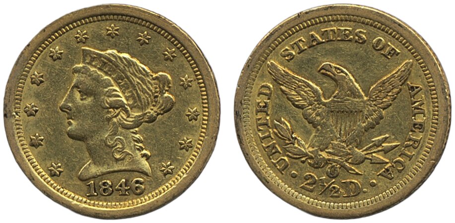 Coins, U.S.A. KM 72, 2½ dollars 1846 O. 4.15 g, O. VF-XF. Mintage: 66000.