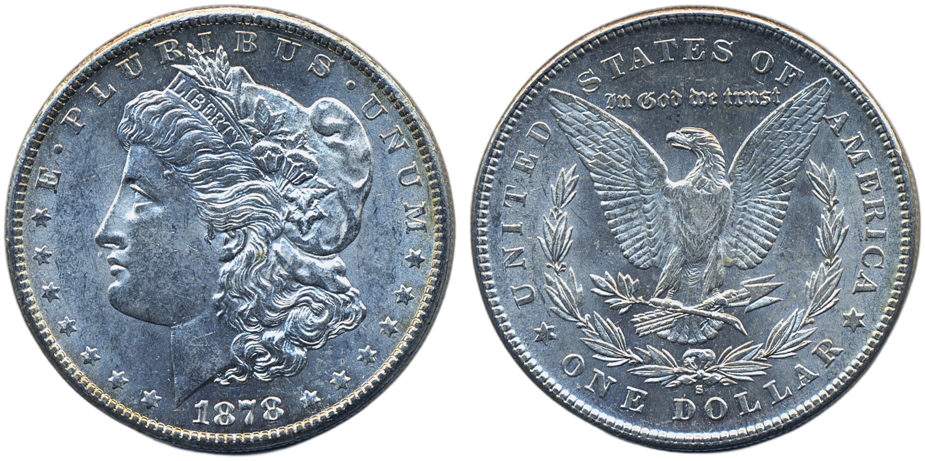 Coins, U.S.A. KM 110, 1 dollar 1878 S. Lustrous and beautiful example of slightly better date. XF-UNC.