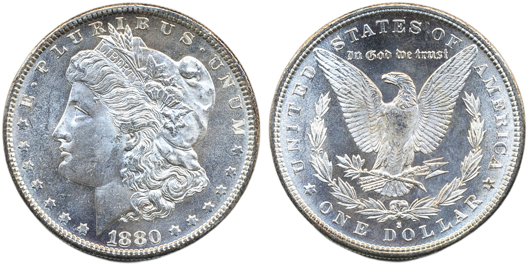 Coins, U.S.A. KM 110, 1 dollar 1880 S. Lightly cleaned. XF-UNC.