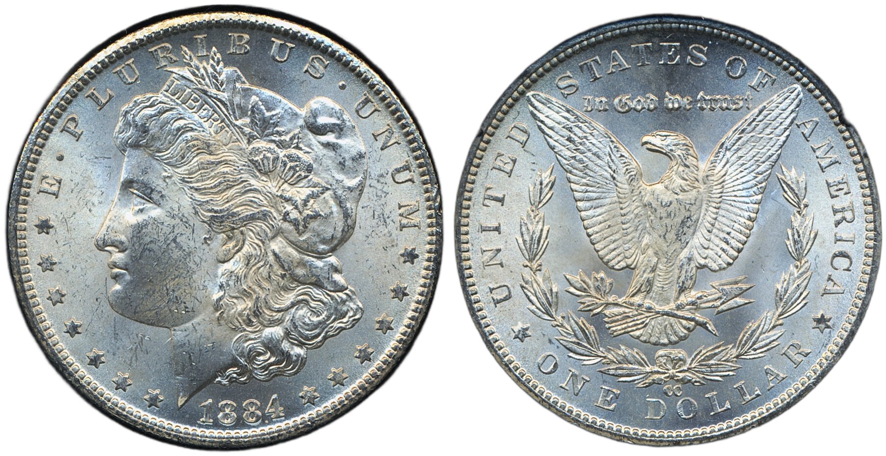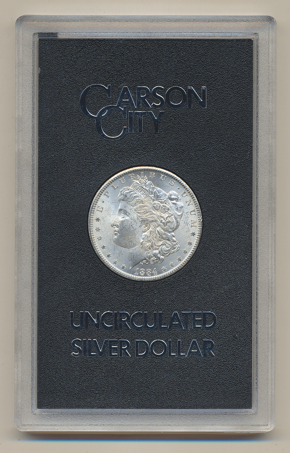 Coins, U.S.A. KM 110, 1 dollar 1884 CC. In black box. XF-UNC.