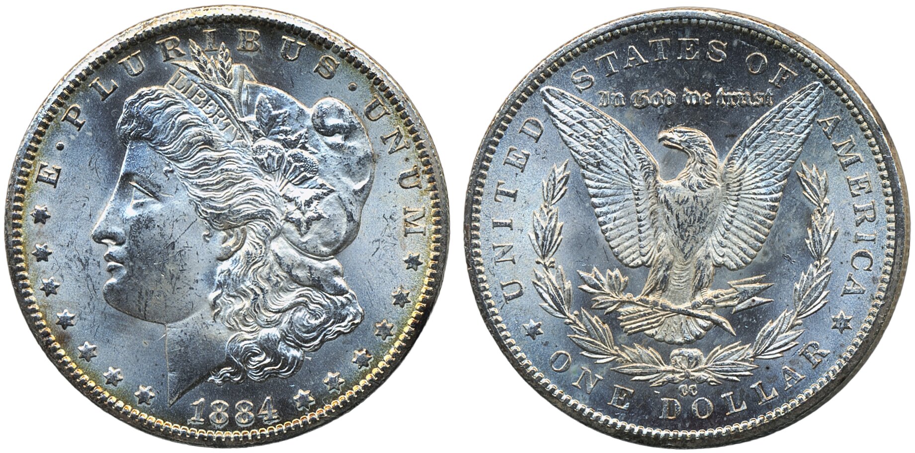 Coins, U.S.A. KM 110, 1 dollar 1884 CC. Lustrous example. XF-UNC.
