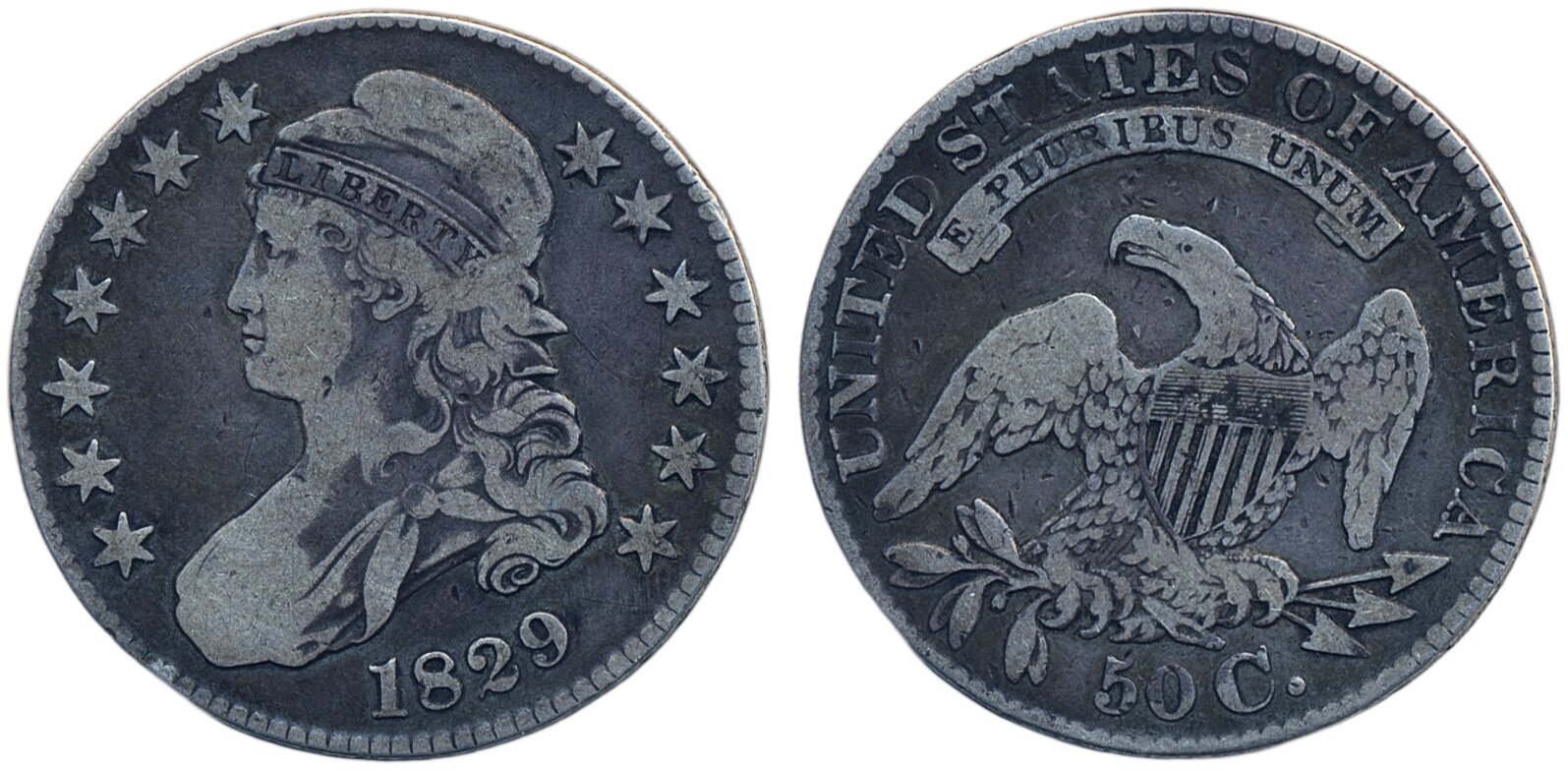Coins, U.S.A. KM 37, ½ dollar 1829. 13.13 g. F.
