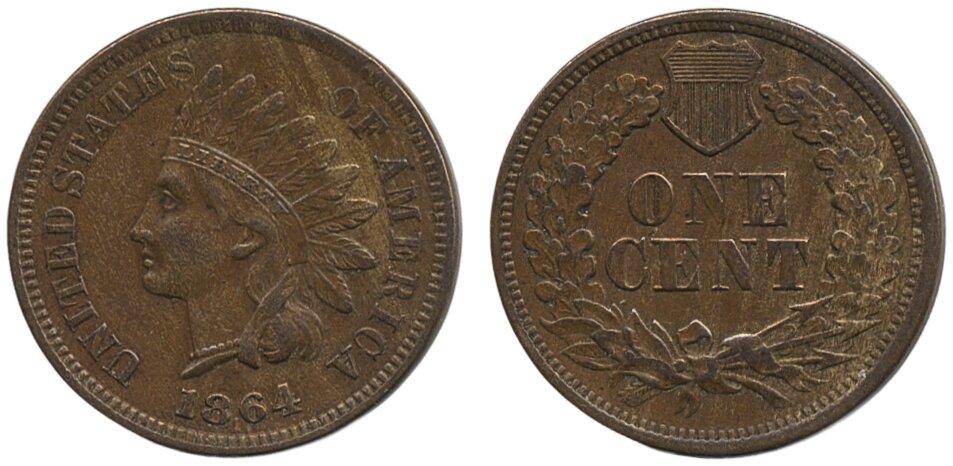 Coins, U.S.A. KM 90a, 1 cent 1864. L on ribbon. VF.